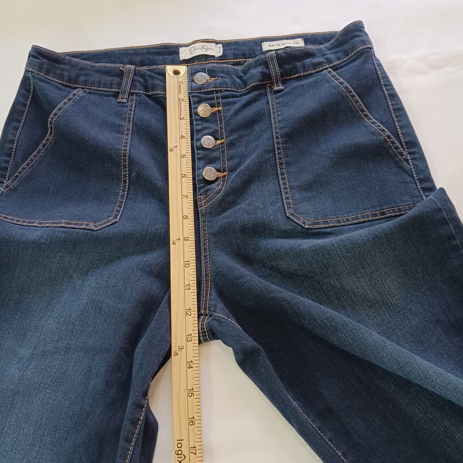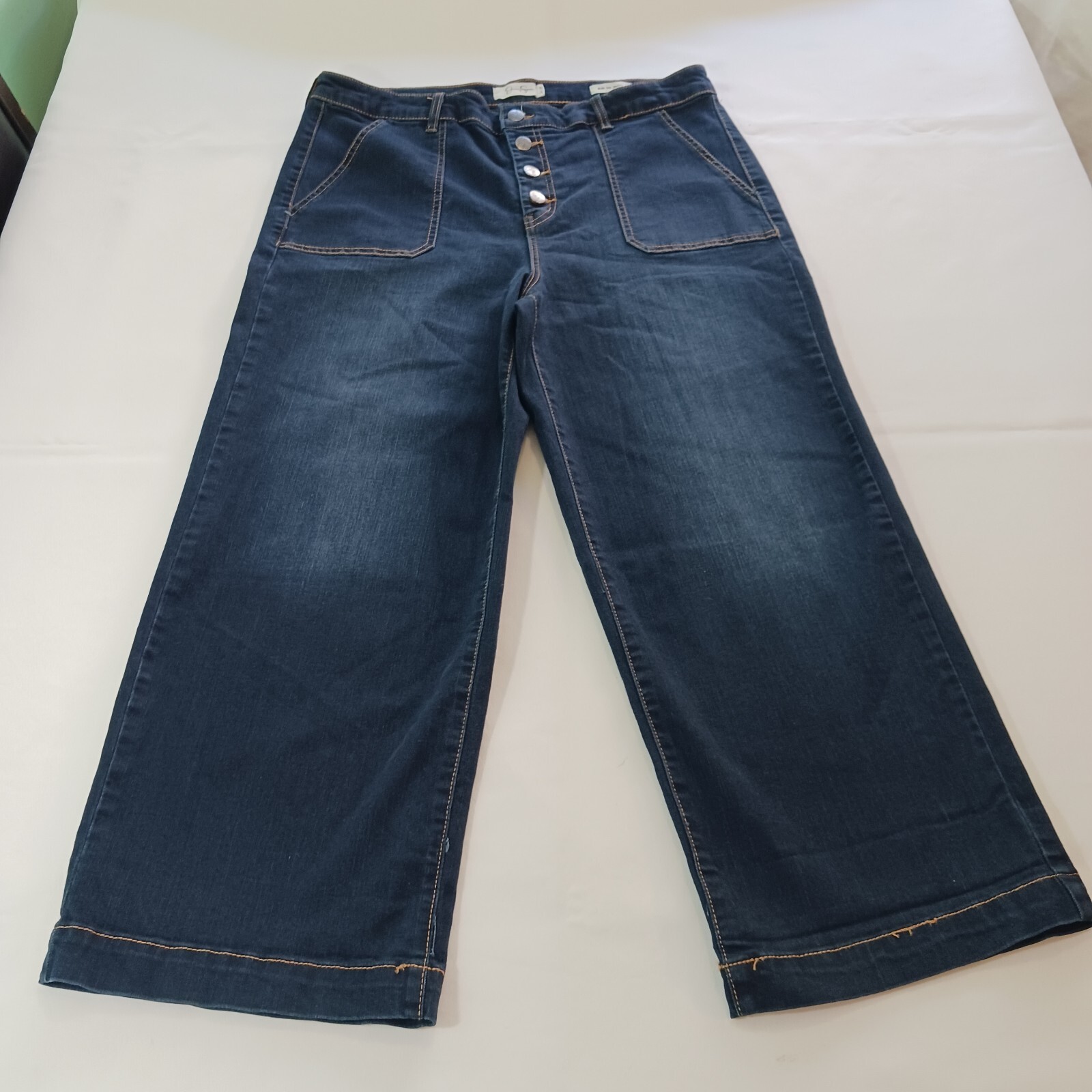 как выглядит Jessica Simpson Wide Leg Utility Crop Womens Blue Denim Jeans Size 16/33 фото