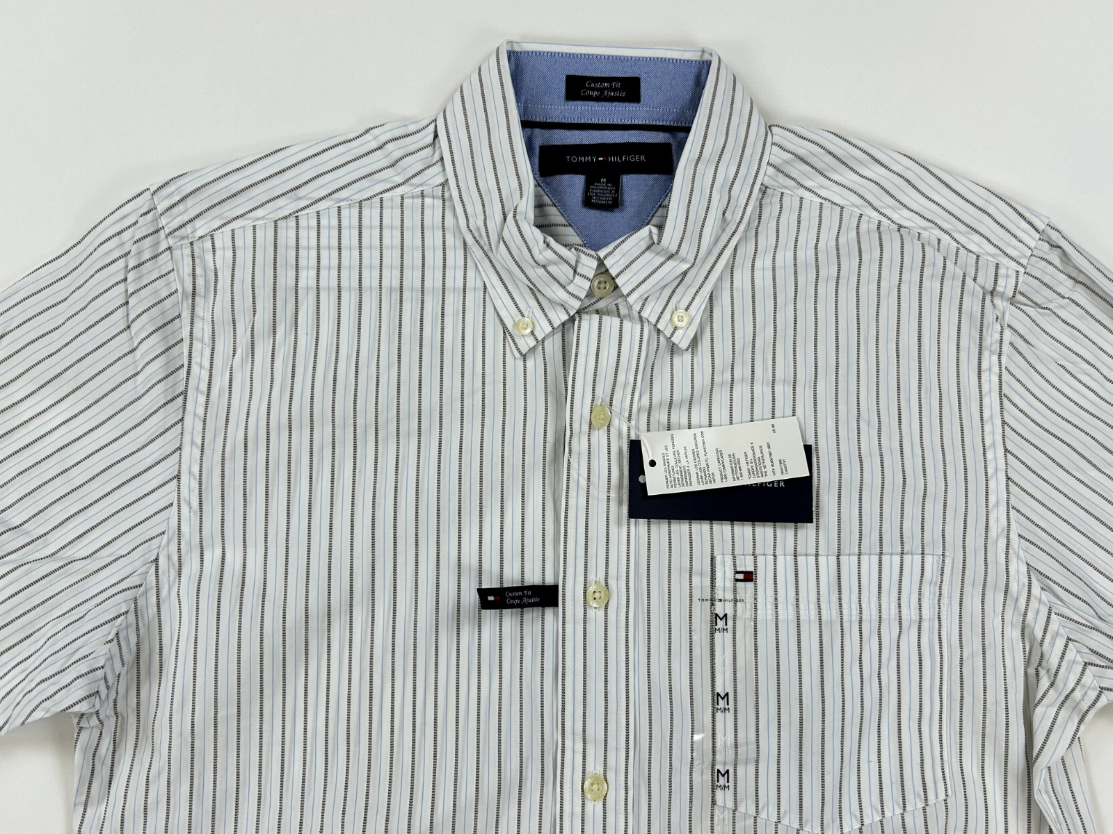 Tommy Hilfiger Button-Down Short Sleeve Shirt with Pocket - White with Stripes -