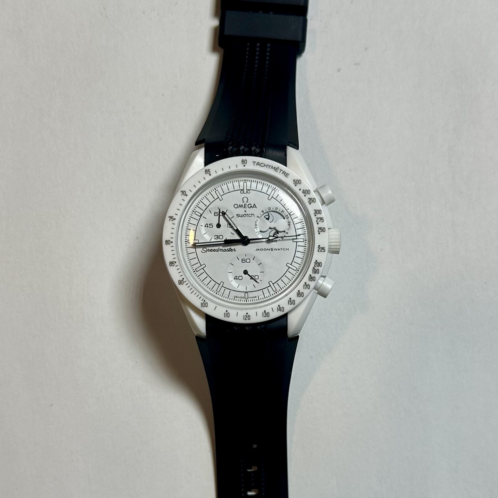 как выглядит 20mm BLACK Flared Vulcanized Rubber Strap OMEGA Moonswatch Mission To The Moon фото