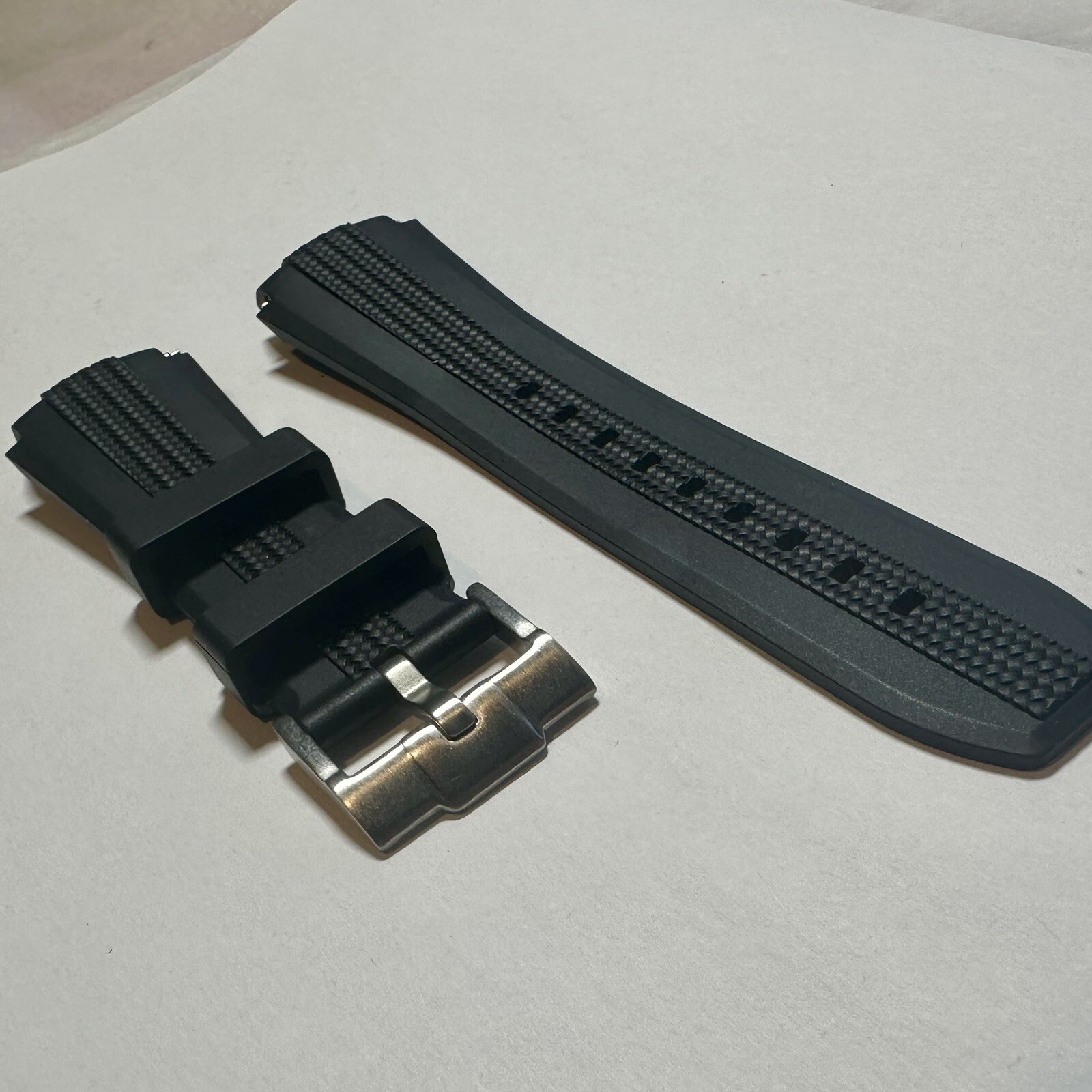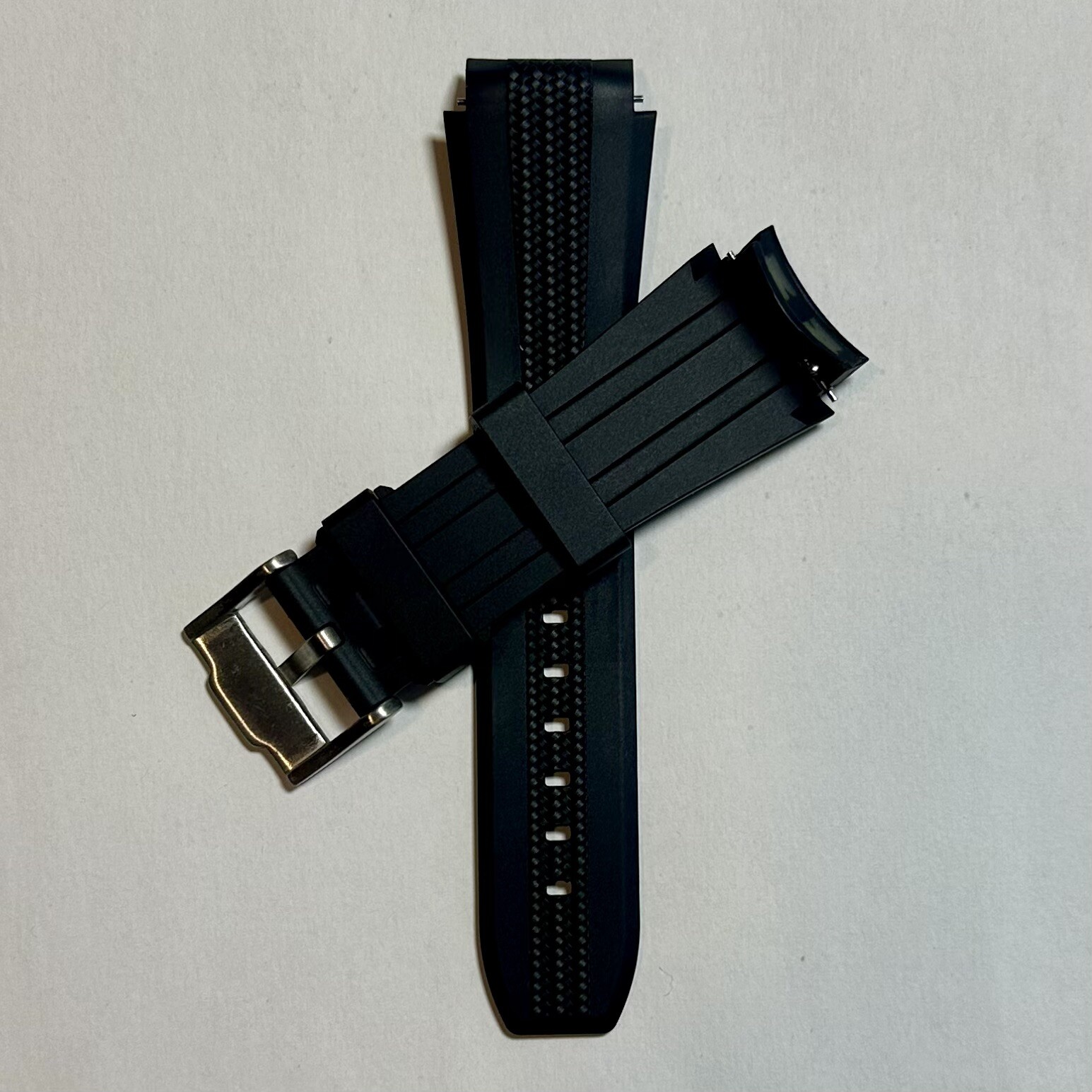 20mm BLACK Flared Vulcanized Rubber Strap OMEGA Moonswatch Mission To The Moon