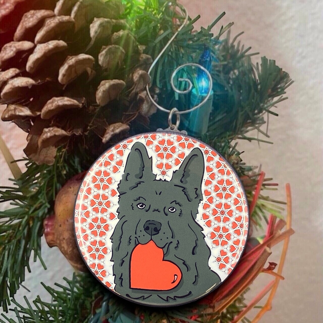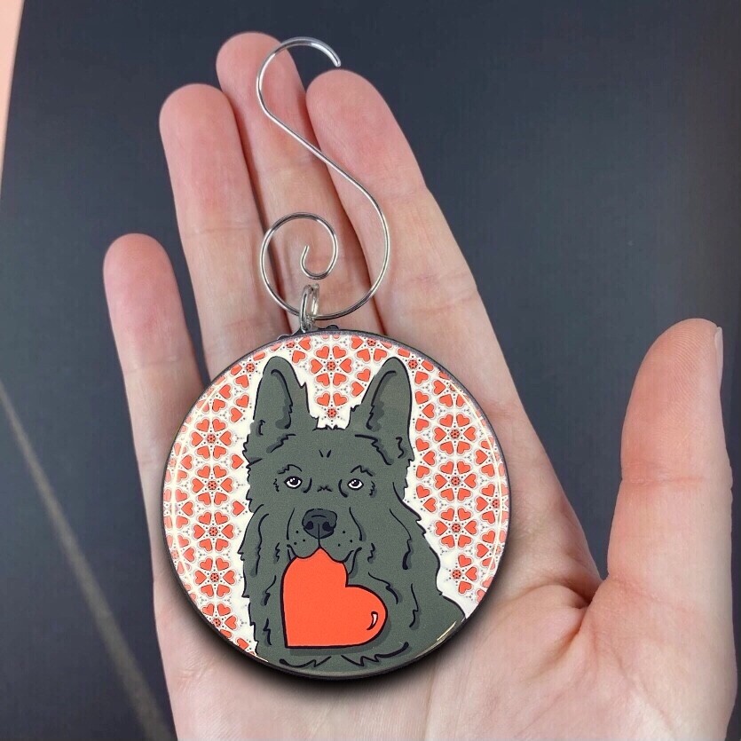 Black German Shepherd Valentines Day Mini Ornament Handmade Holiday Gift Decor