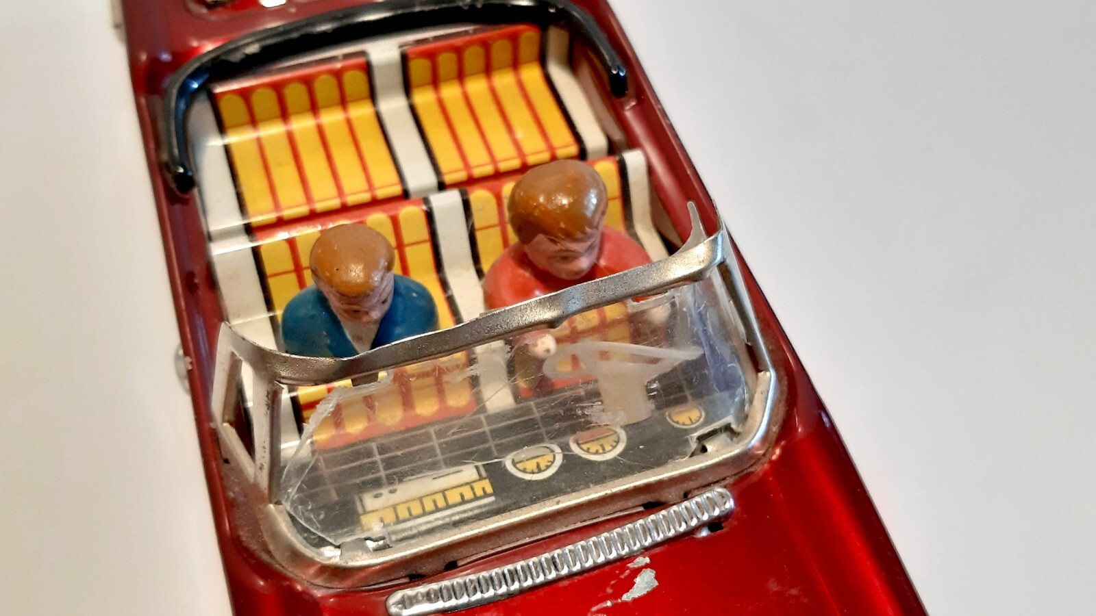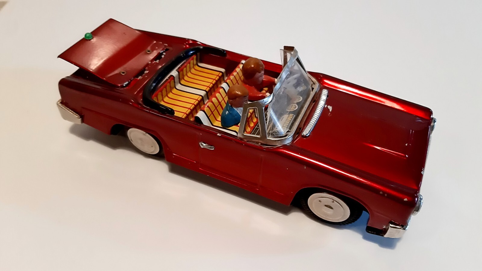 Vintage Red China Friction Litho Tin Toy MF-191 Convertible Car with Driver