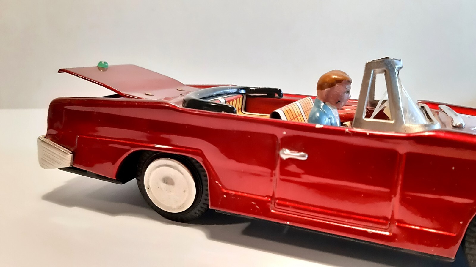 как выглядит Vintage Red China Friction Litho Tin Toy MF-191 Convertible Car with Driver фото