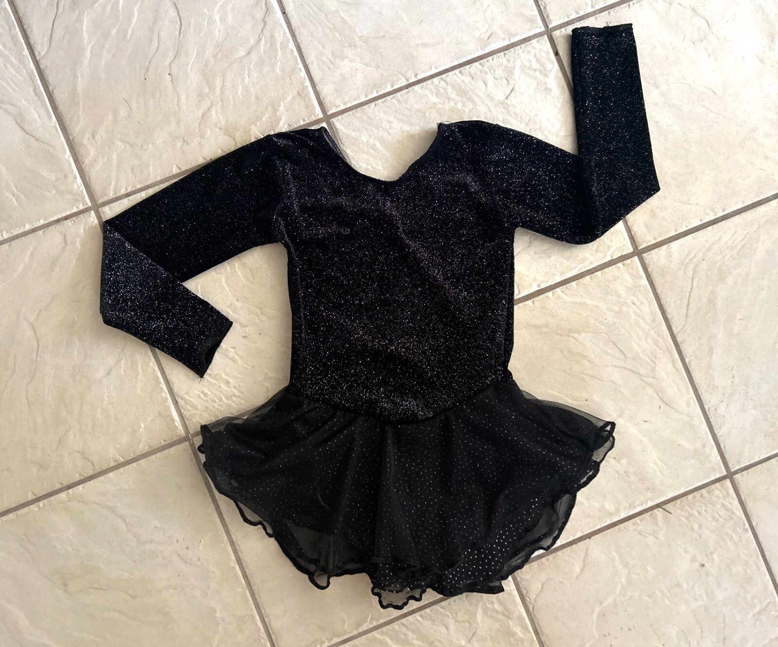NEW Girls GLITTERY VELVET Black CHIFFON Competition FIGURE ICE SKATING Dress