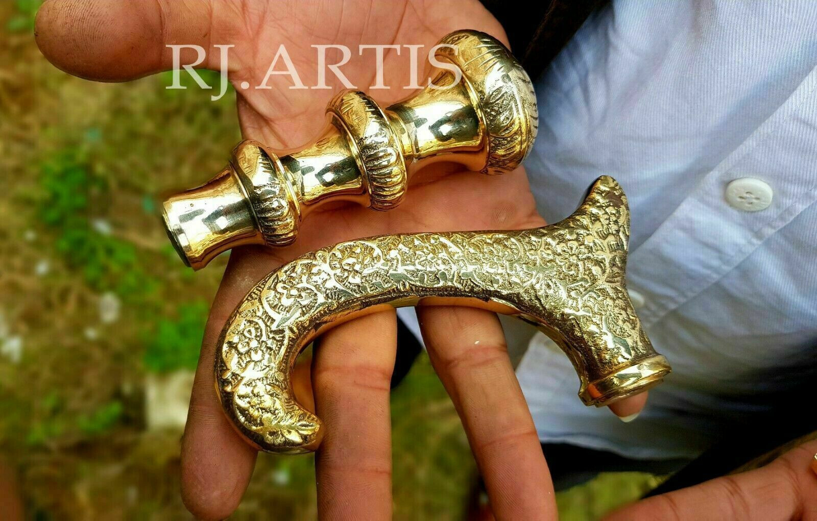 Lot OF 4 Pic Solid Brass Finish Heavy top Handle for Wooden Walking Cane /Stick