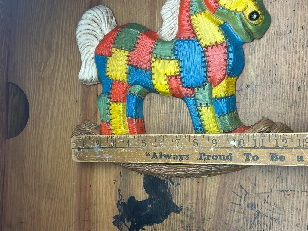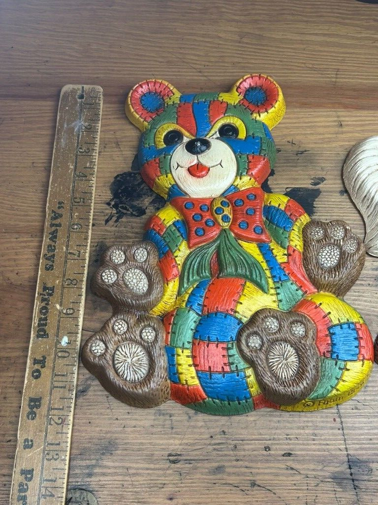 как выглядит Foam Craft 1970s Rocking Horse Bear Patchwork 12 Wall Hanging Nursery фото