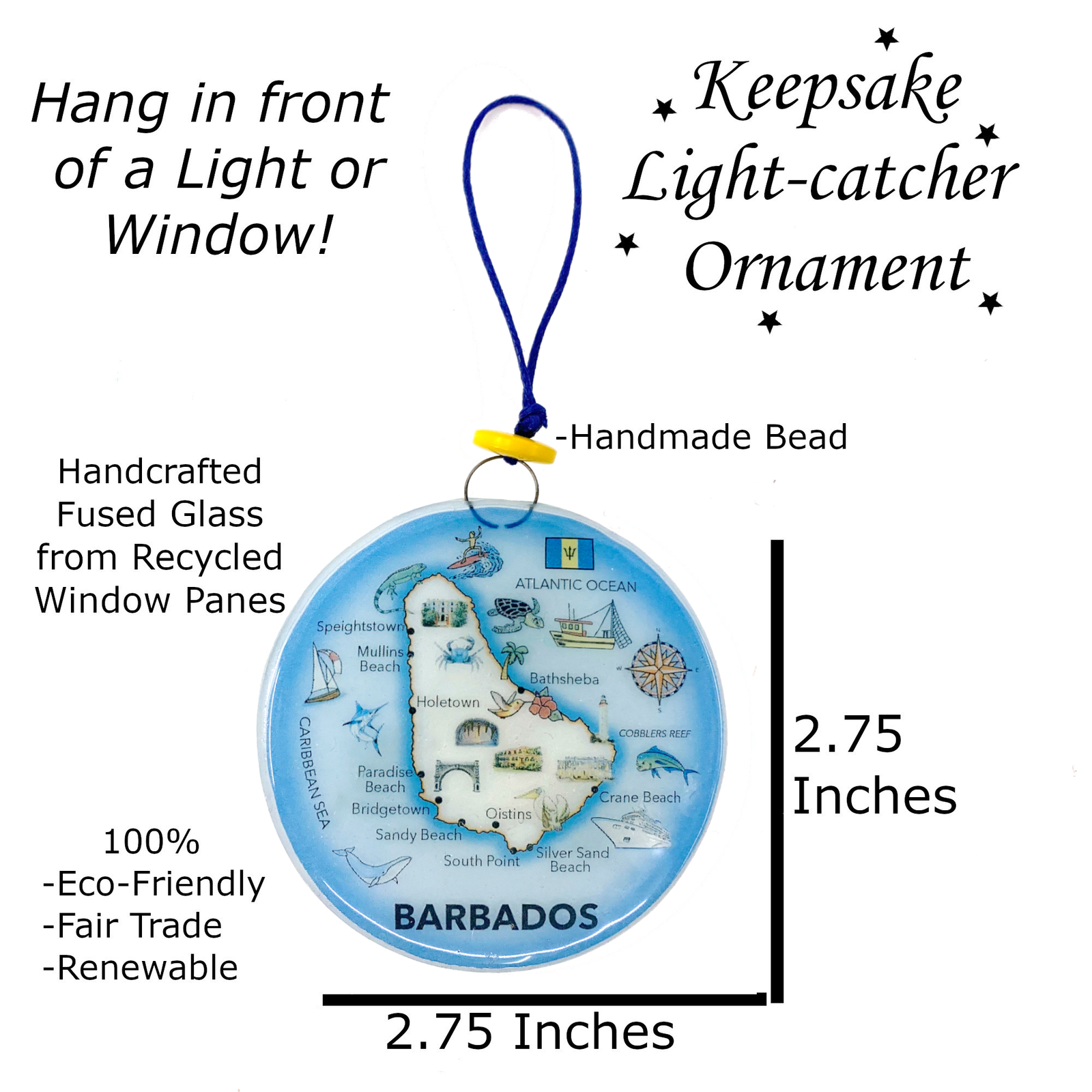 Barbados Glass Ornament - Map Christmas Tree Decoration - Art