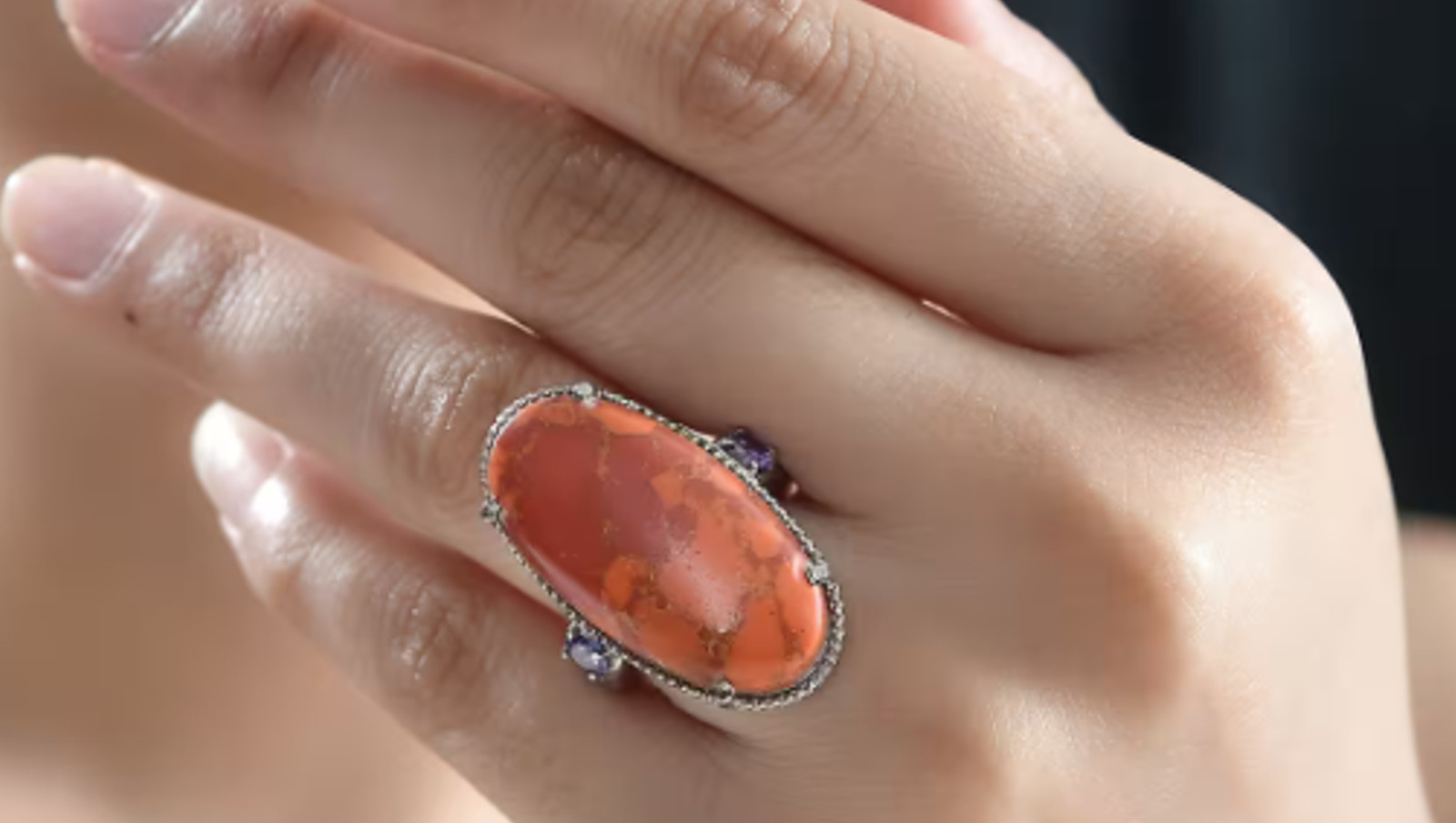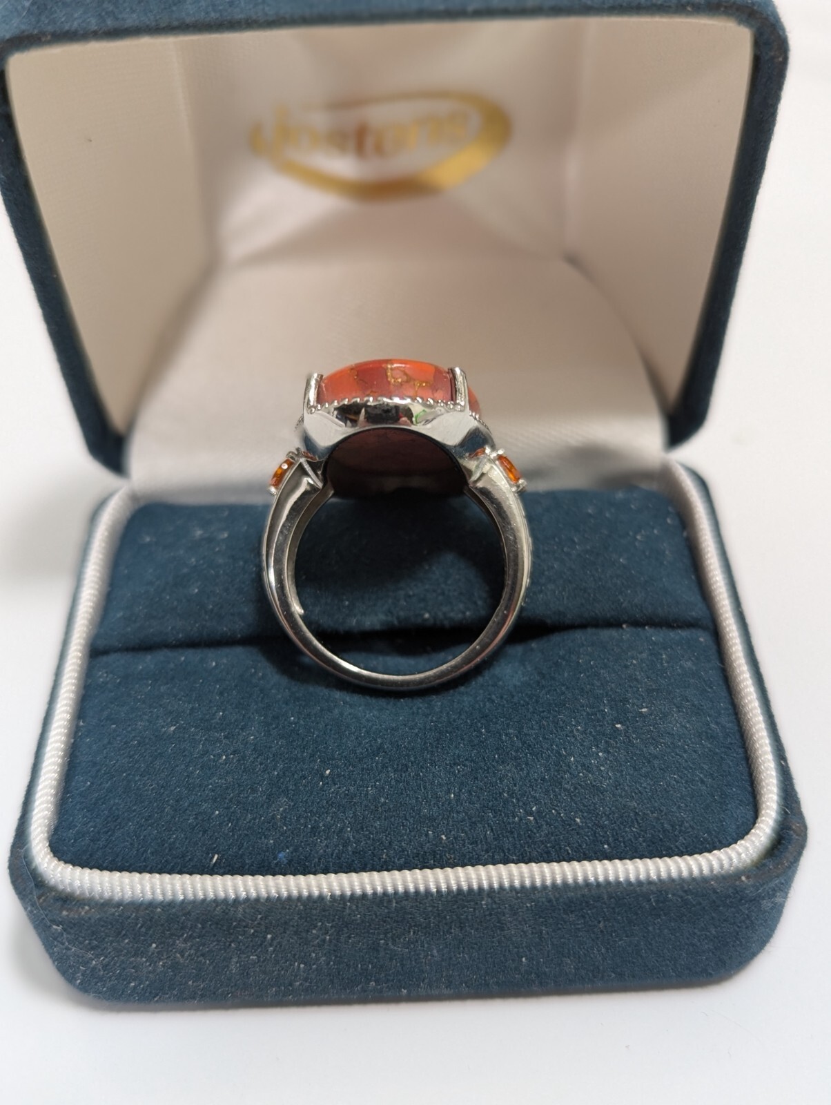 как выглядит MOJAVE ORANGE TURQUOISE SIMULATED DIAMONDS RING In STAINLESS STEEL, SIZE 8. фото