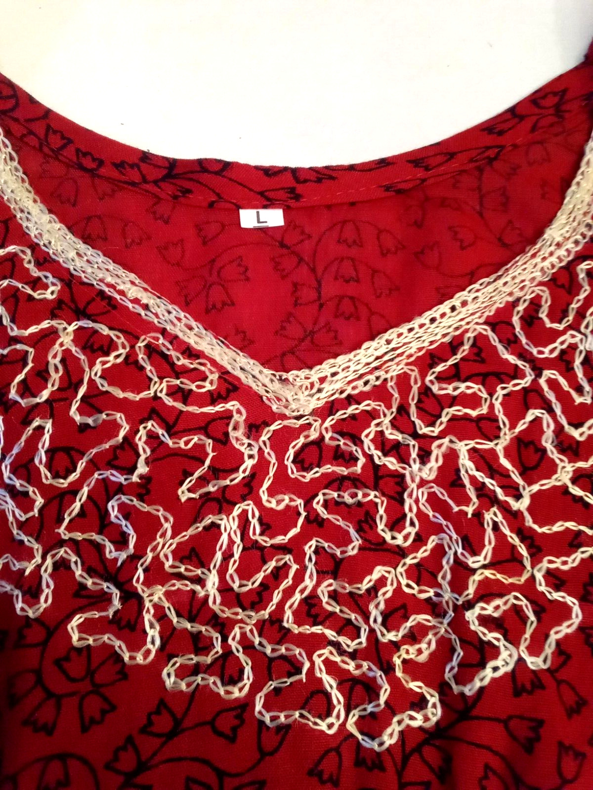 как выглядит Red Floral Print Embroidered Tunic Top size Large Kurta Shirt Short India Kurti фото