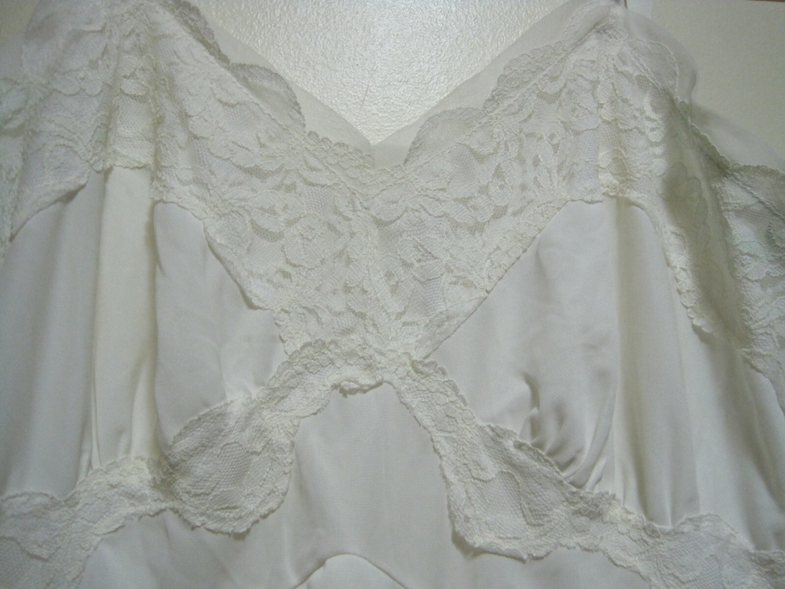 как выглядит VINTAGE WHITE LACE CHIFFON LINED WOMAN SZ 38 NYLON FULL SLIP фото