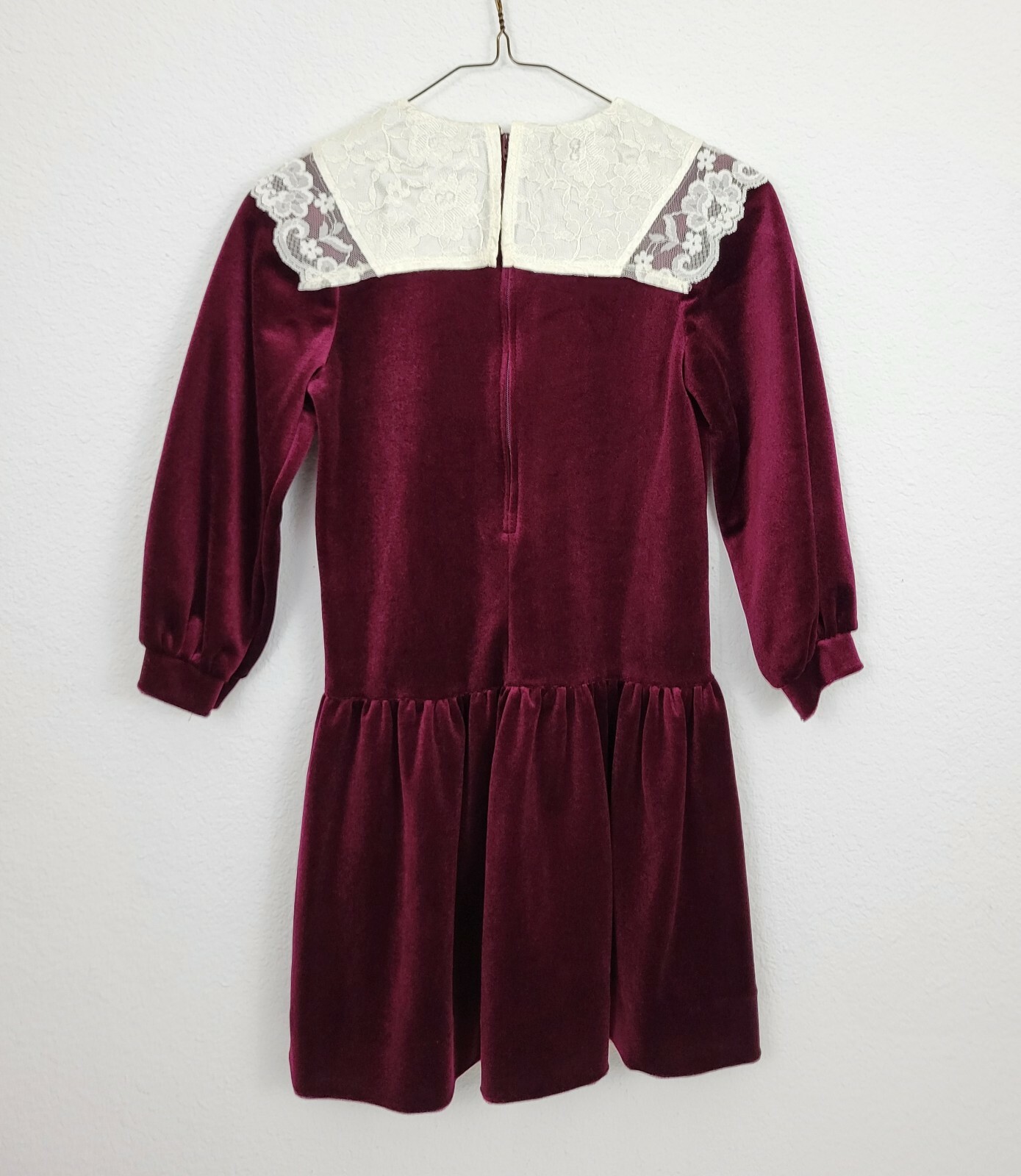 Vintage RARE EDITIONS Girls Red Maroon Velvet White Lace Long Dress 7 Christmas