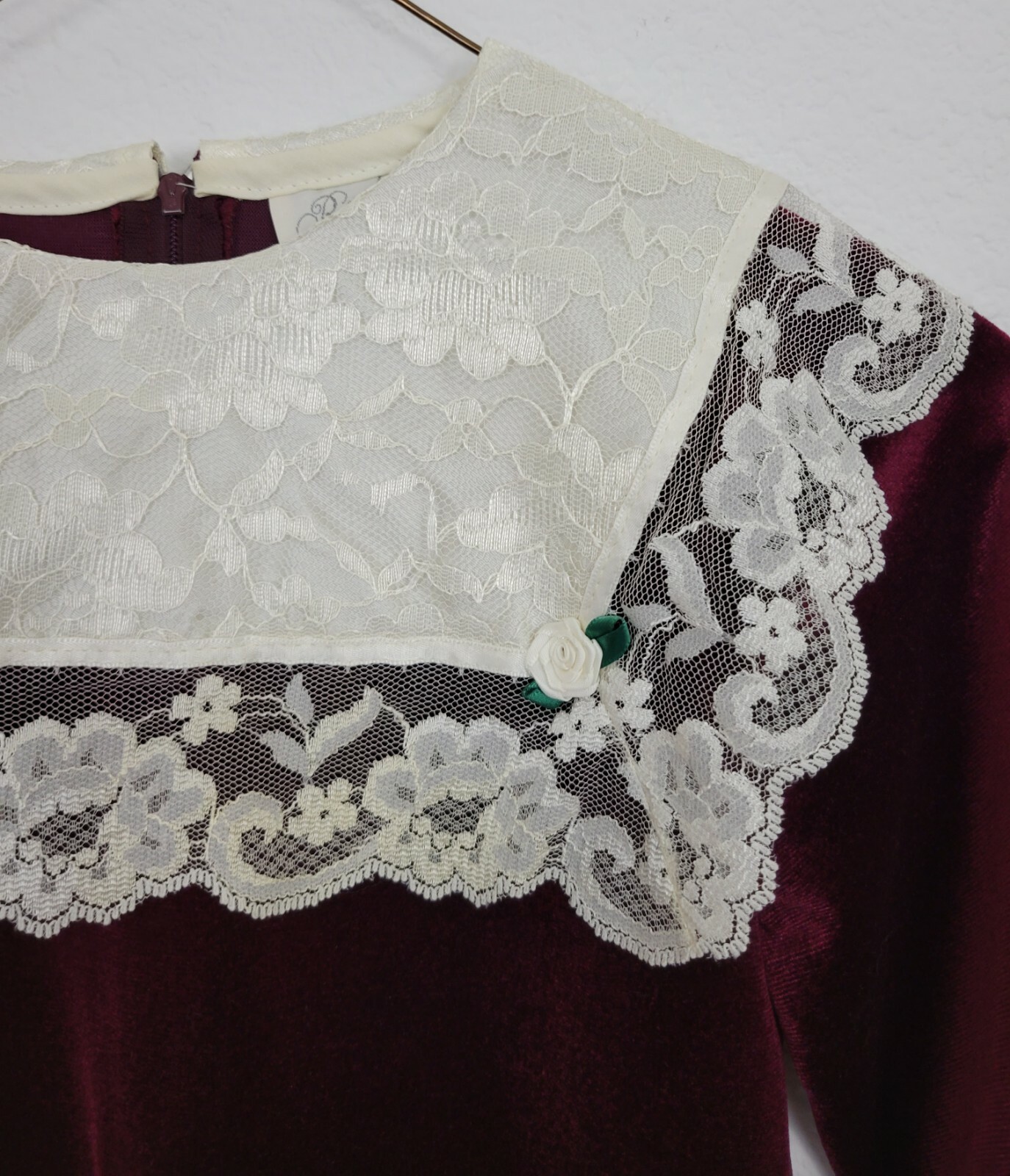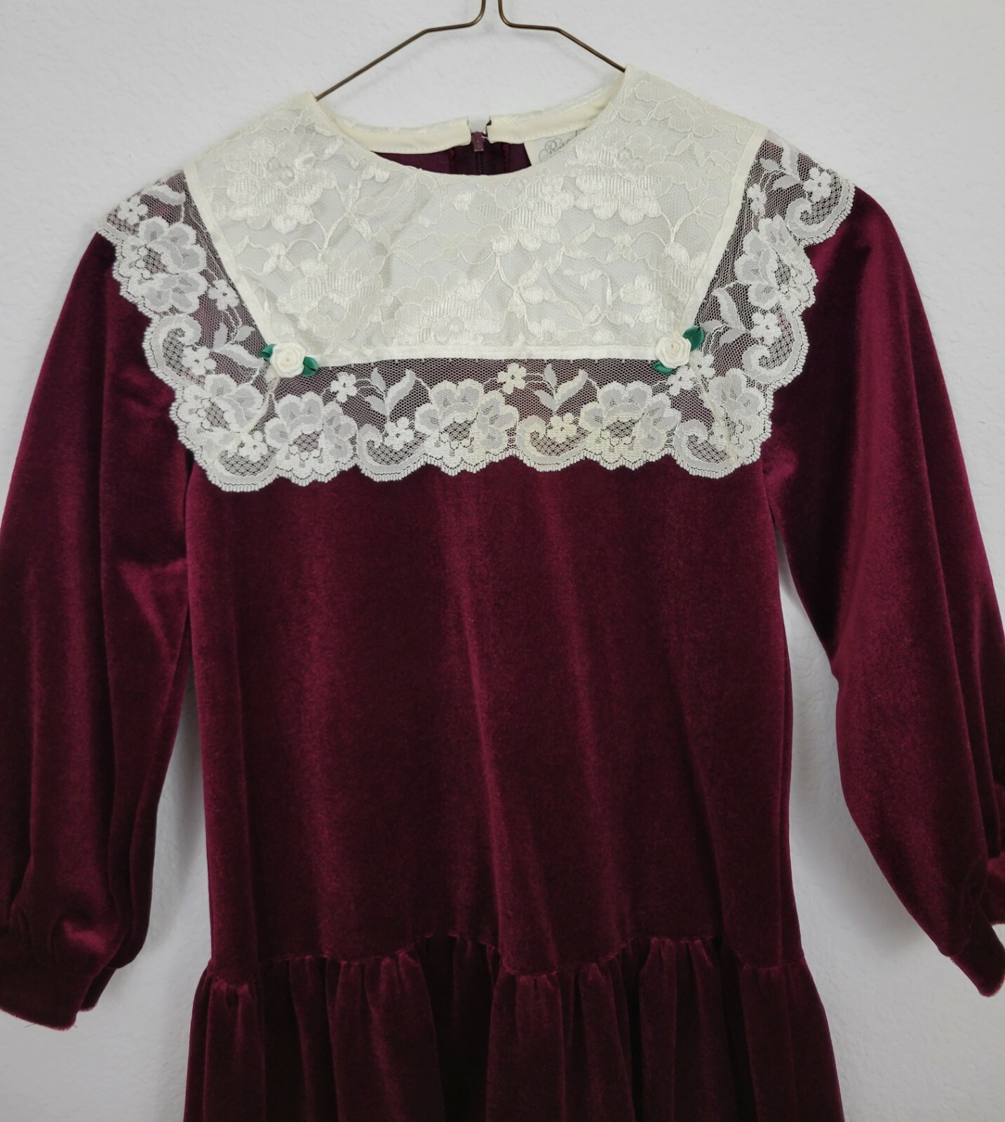 как выглядит Vintage RARE EDITIONS Girls Red Maroon Velvet White Lace Long Dress 7 Christmas фото