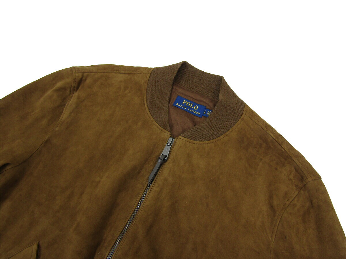 Polo Ralph Lauren Men's Suede Leather Bomber Jacket Coat with Pony - Brown -