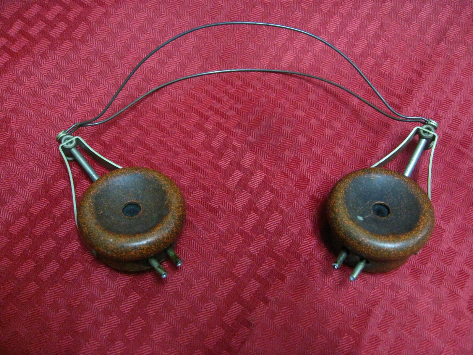 как выглядит Vintage rare unique Red Mottled Pattern Headphones radio earphone headset фото