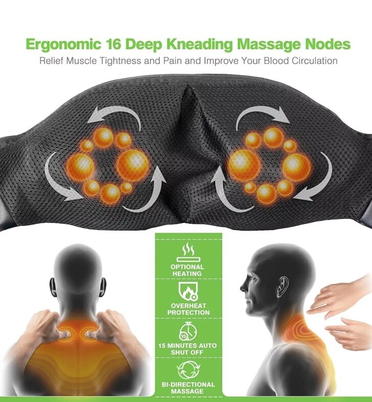 Shiatsu Back Neck and Shoulder Massager with Heat,Deep Tissue 3D Kneading Pillow