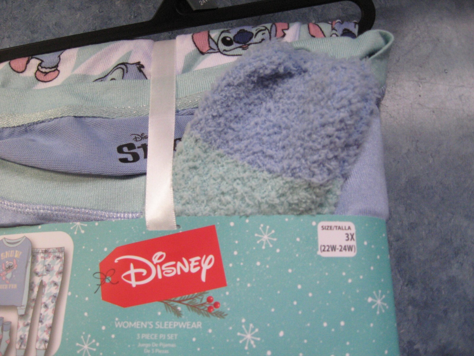 Disney Stitch Womens 3 pc. pajama set Size 3X 22W-24W Plus Size with socks New