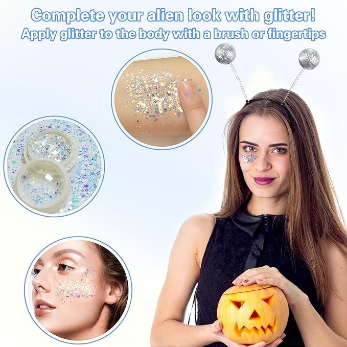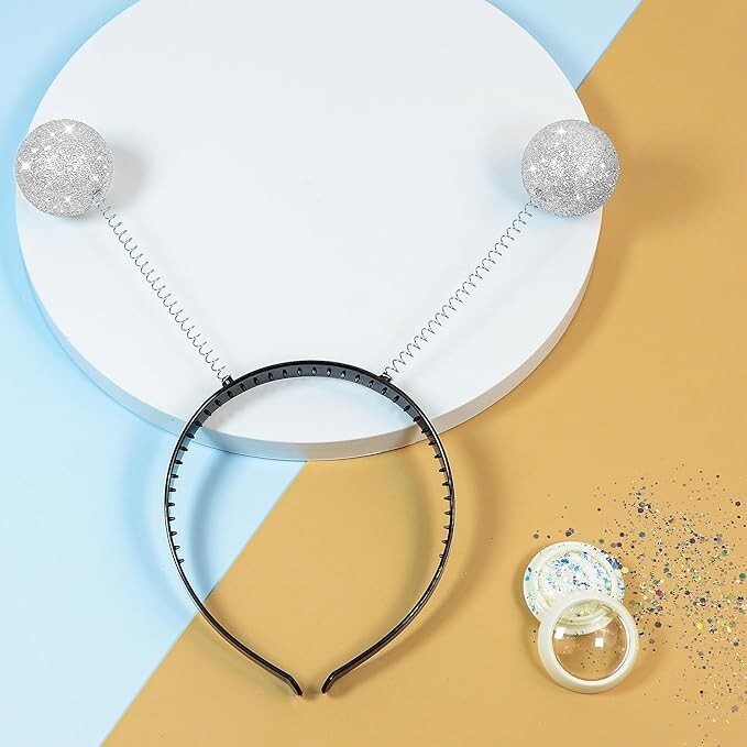 Alien Headband with Glitter, Silver Martian Antenna Headband Glitter Ball