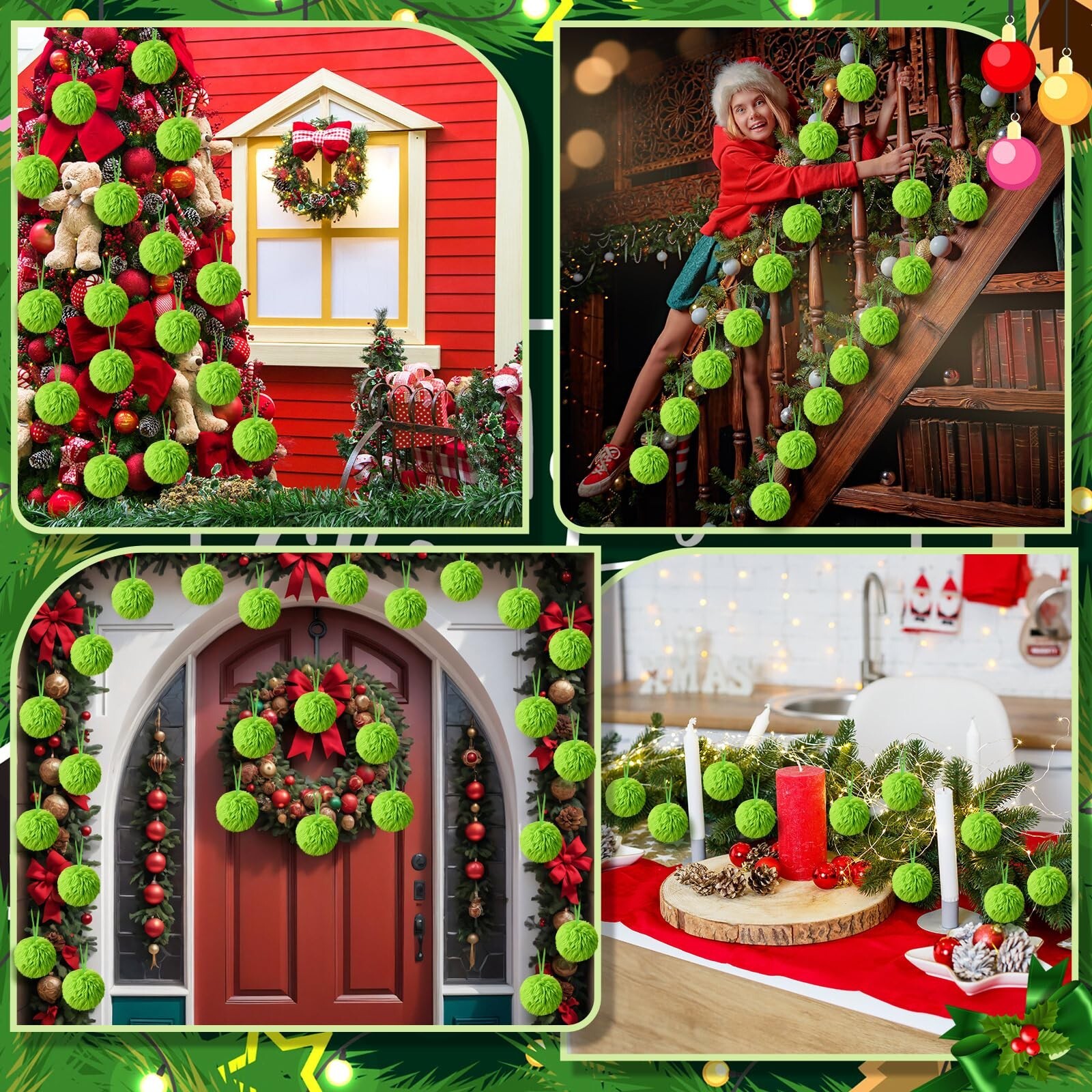 как выглядит 16 Pcs Lime Green Christmas Balls Ornaments 2.36 Inch Hanging Furry Christmas... фото