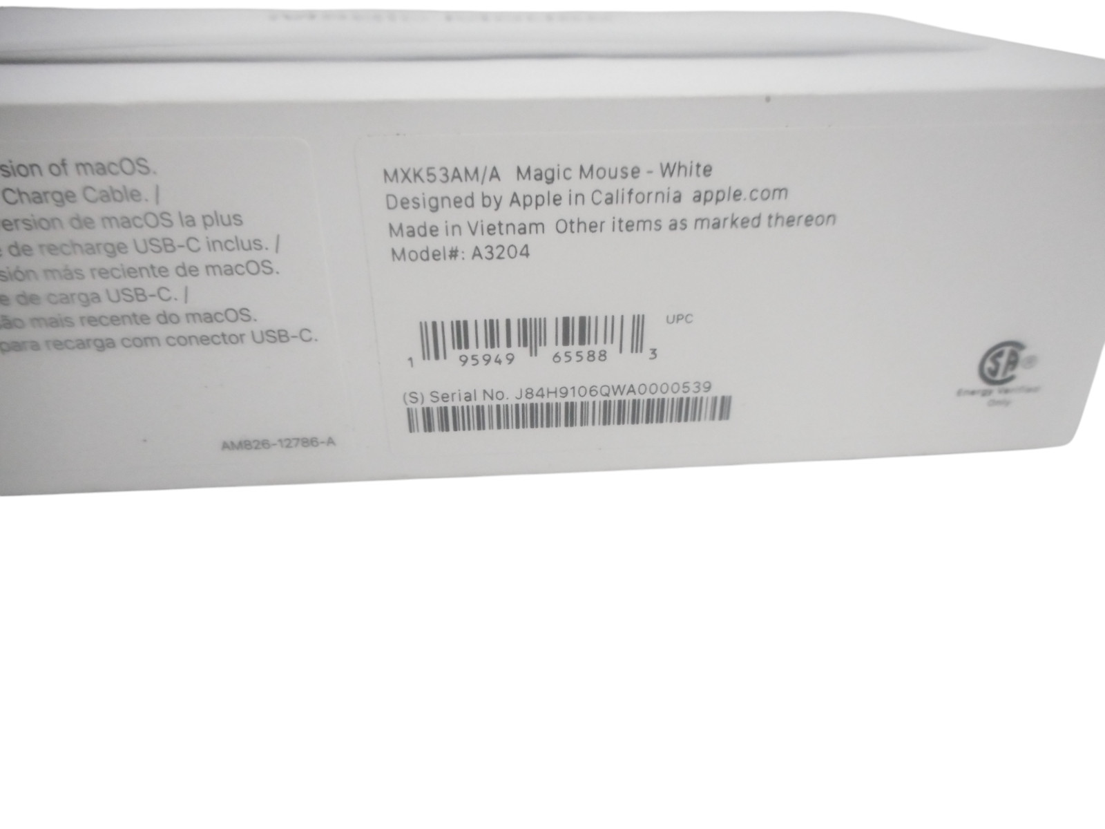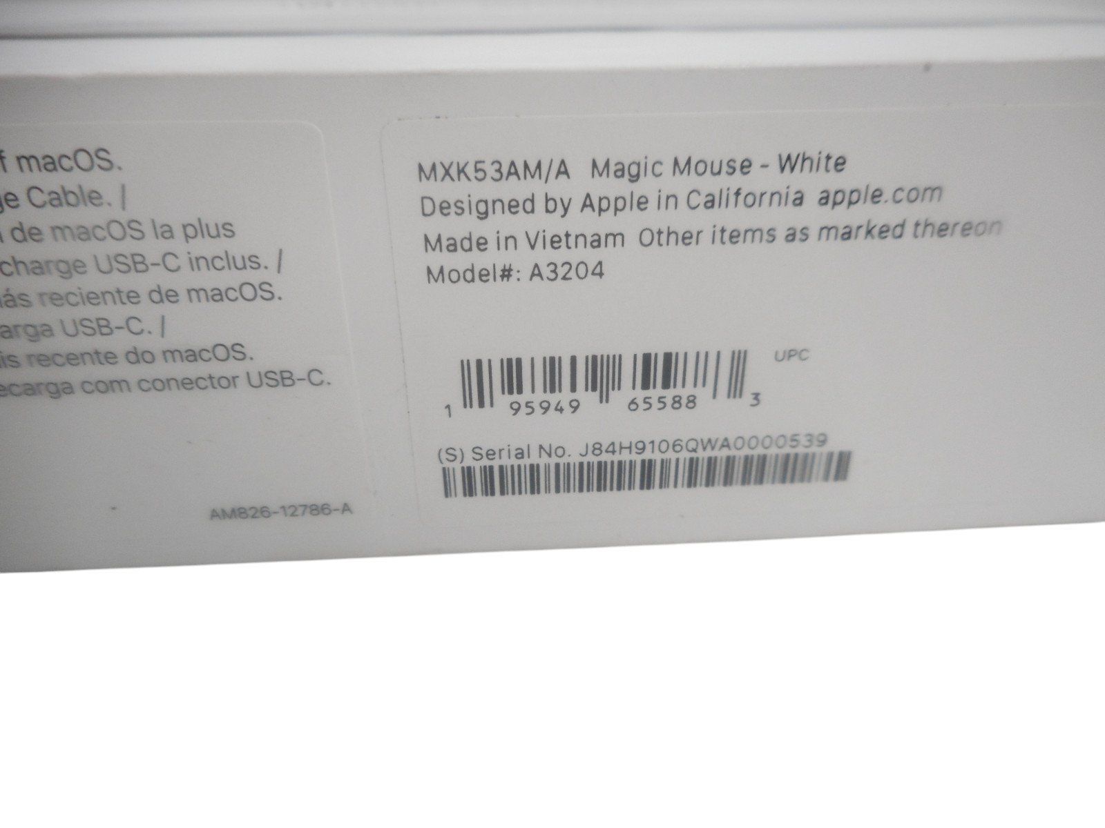 Apple Magic Mouse Multi-Touch Surface 2024 Model USB-C WHITE A3204 MXK53AM/A NEW