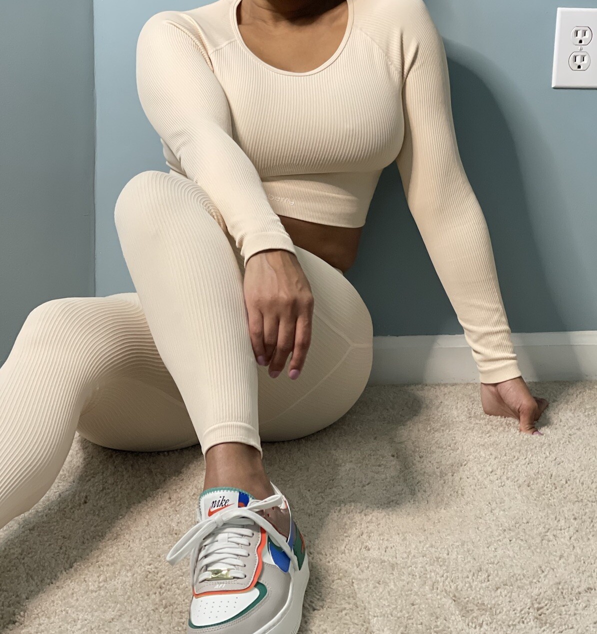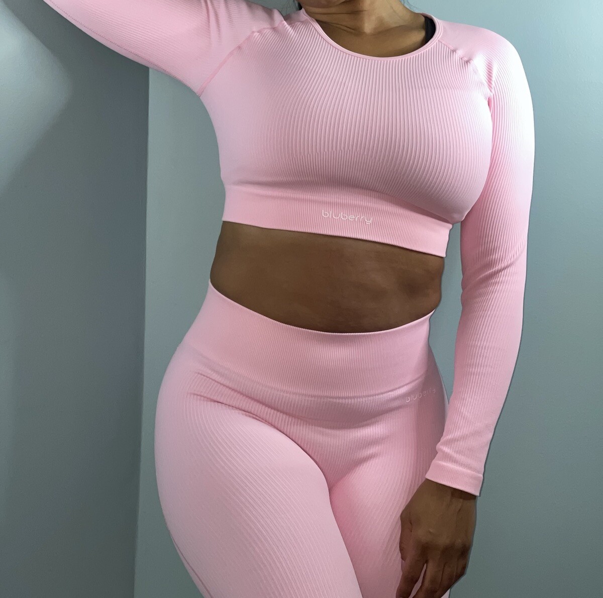 Bluberry Crop Top Athleisure Sets - Powdered Pink, Pink Rose Tan