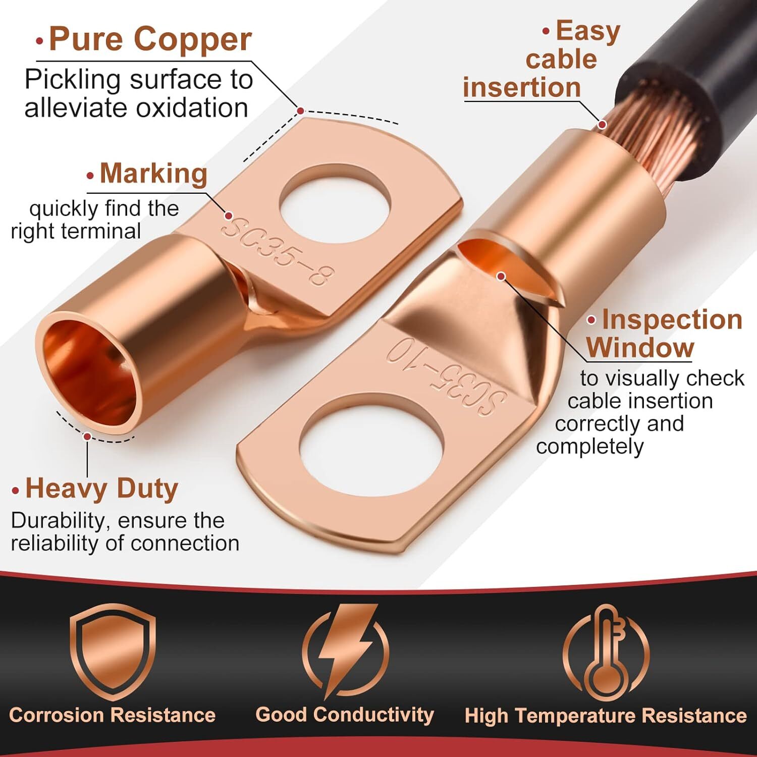 Copper Battery Cable Ends Wire Lugs Assortment Kit AWG 2 4 6 8 10 Gauge 150pcs