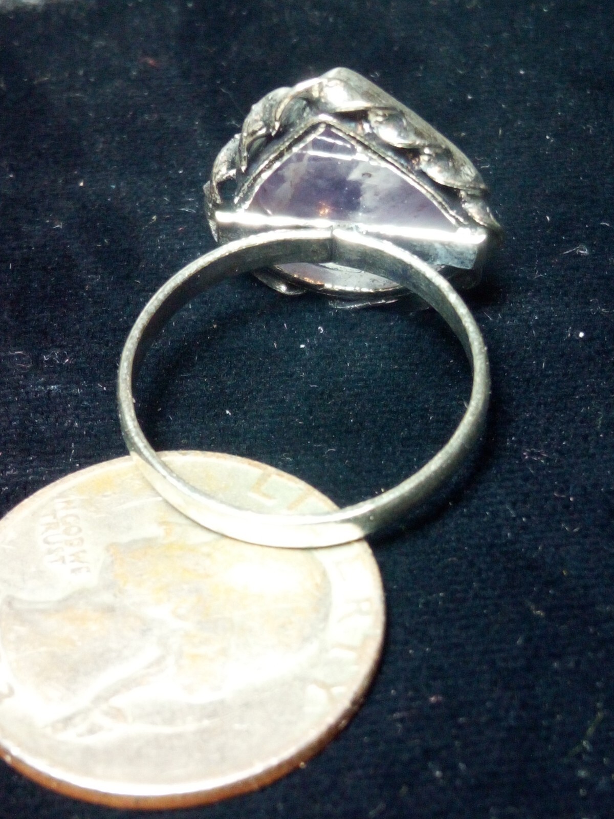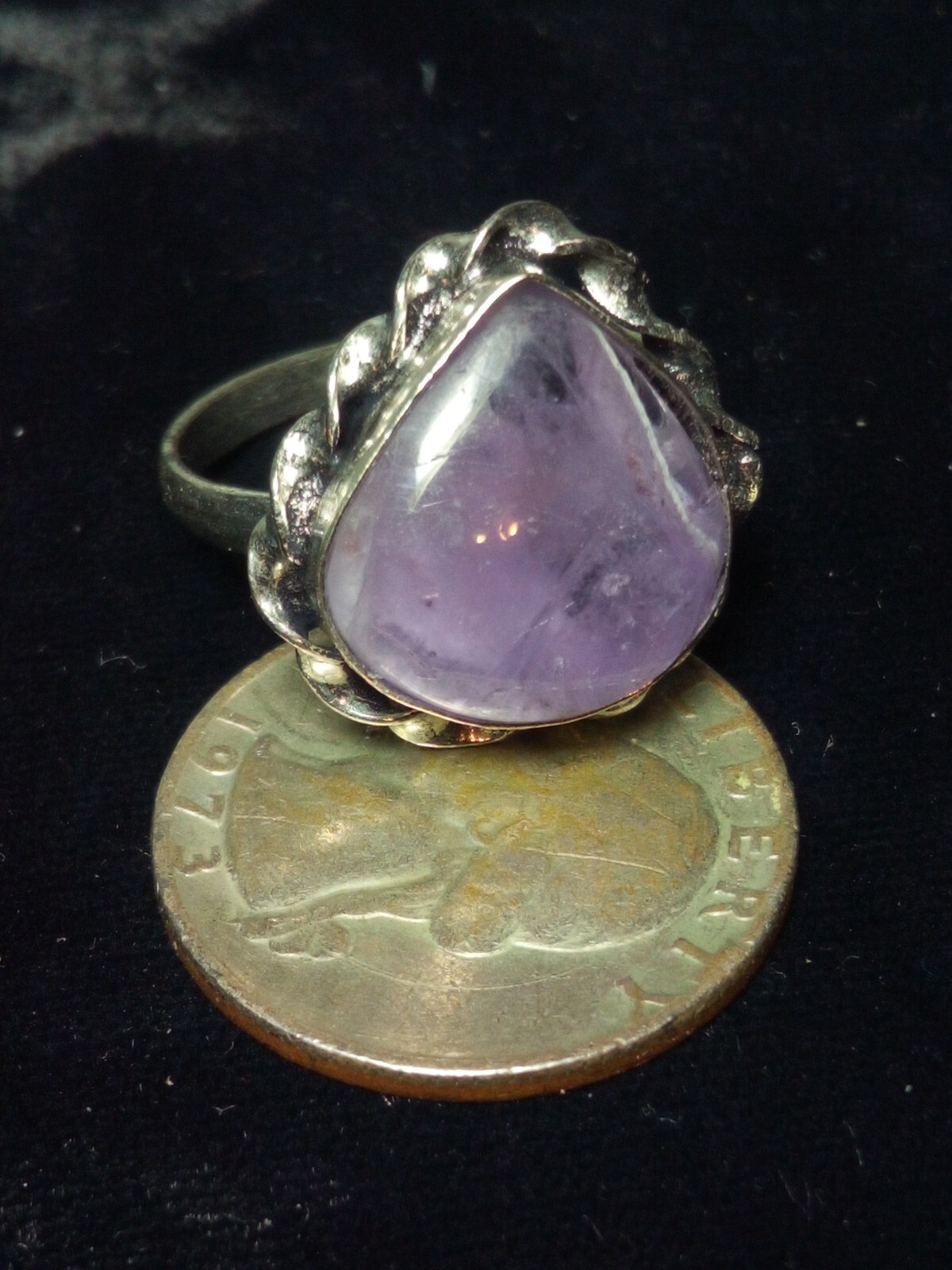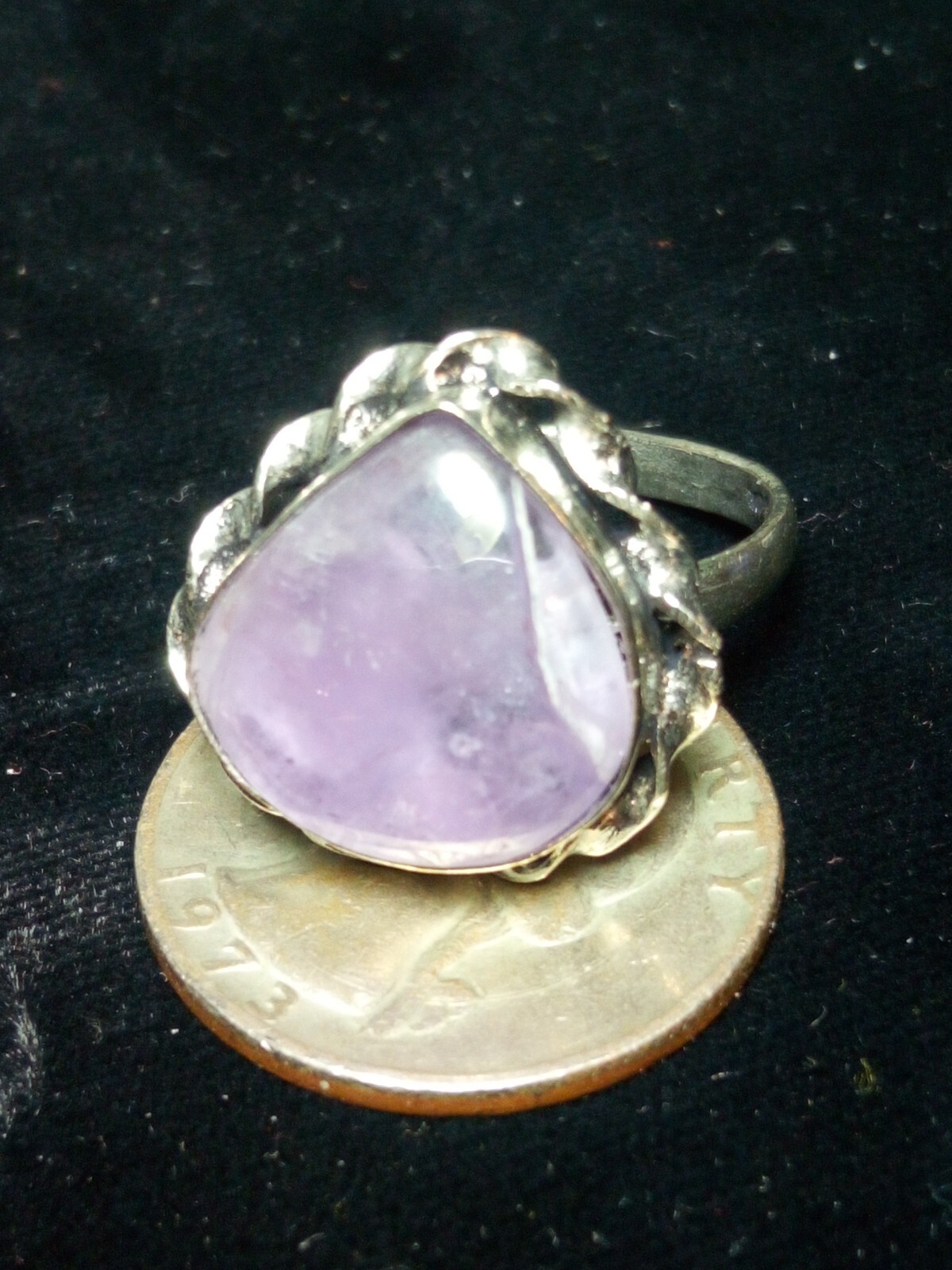 silver plated natural crystal amethyst ring size 10.5 Teardrop Ornate Purple C13