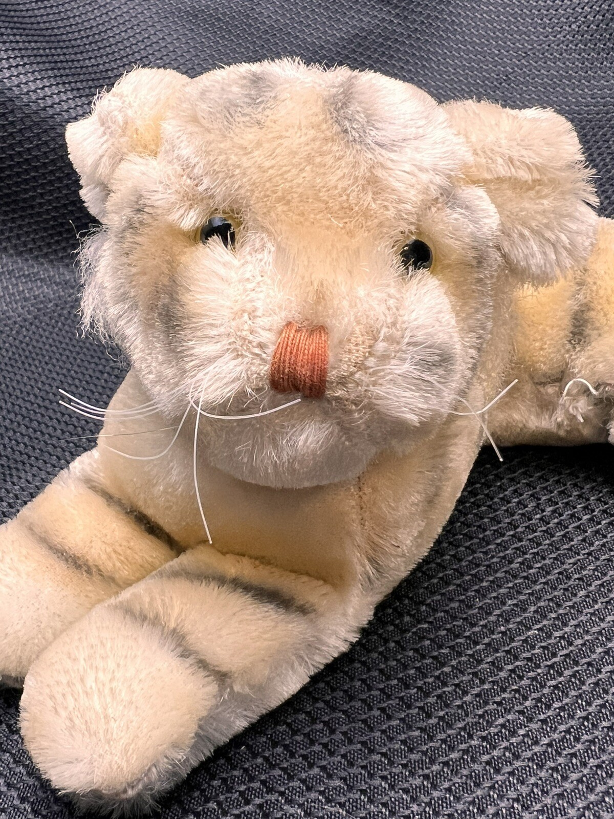 Vintage Steiff Plush Stuffed Animal Small Striped Tiger Mohair BIG CAT Laying
