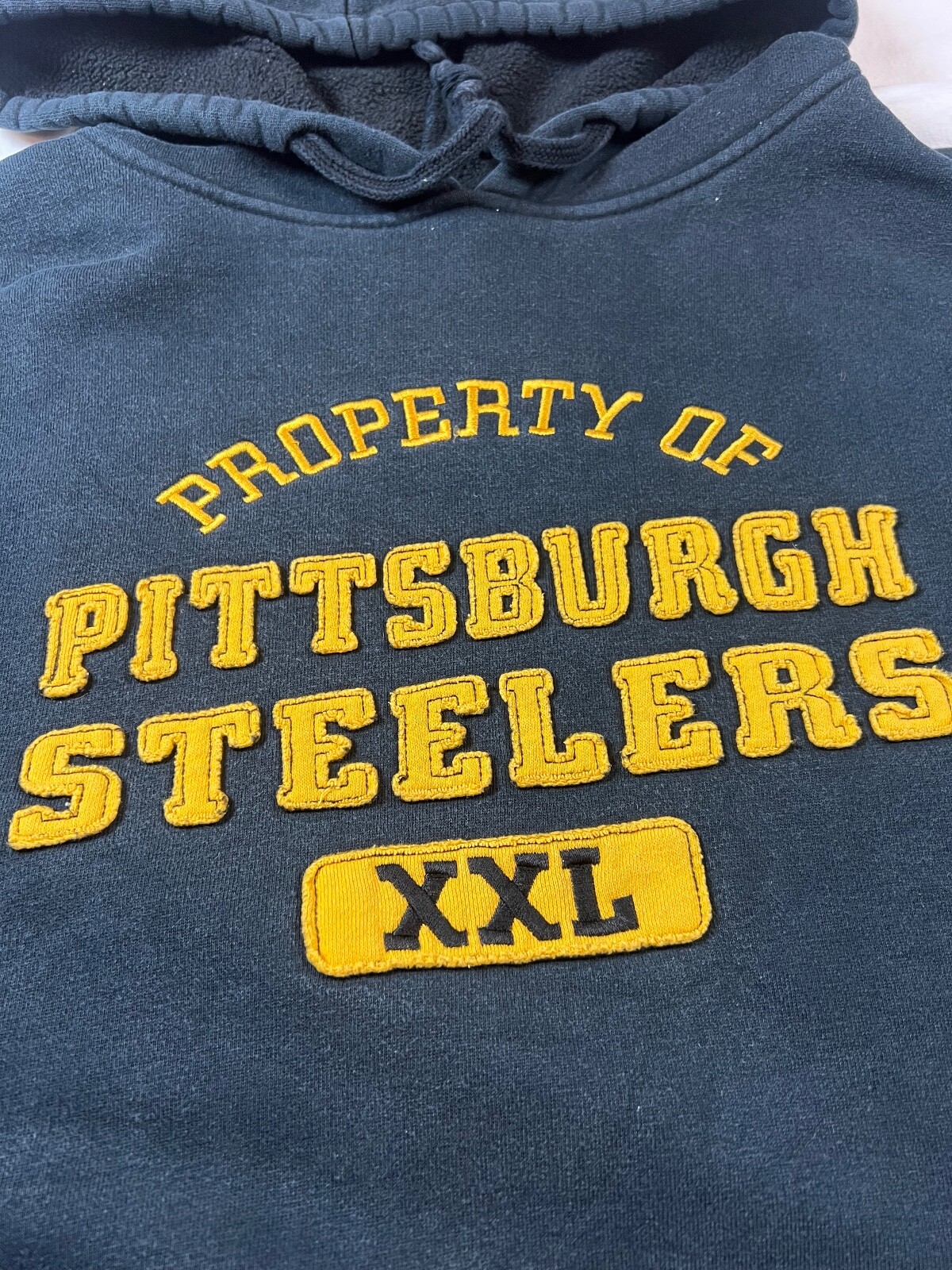 как выглядит VTG RBK Pittsburgh Steelers NFL gridiron Sweatshirt Pullover Hoodie Black Mens L фото