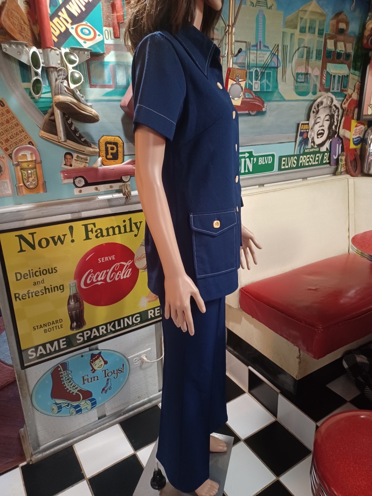 True VTG Mid-century 1960s 1970s Polyester Pant Suit Mod MCM Groovy S/M 60s 70s