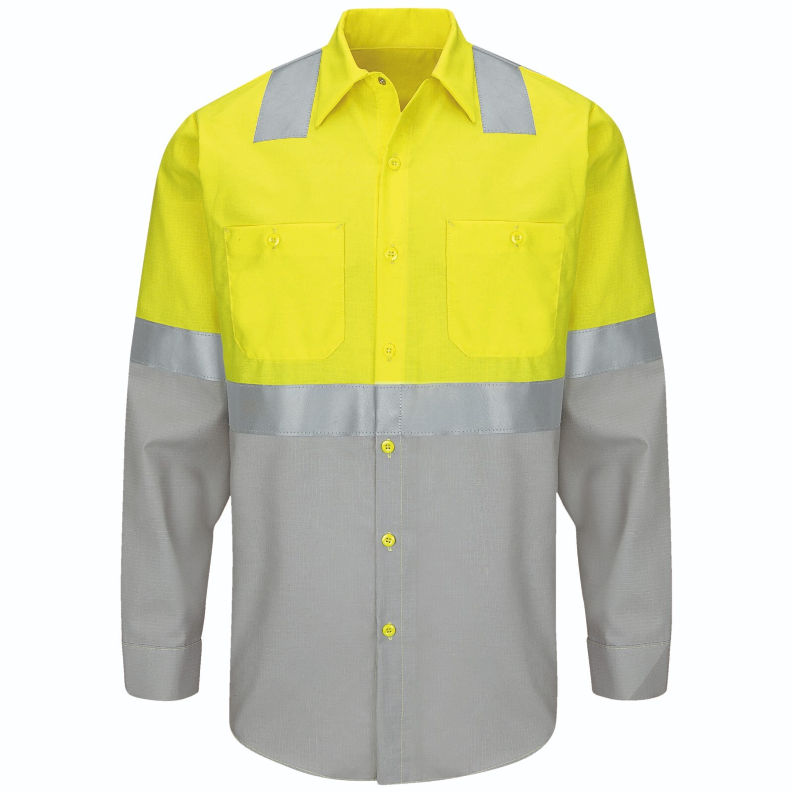 Red Kap Enhanced Visibility Ripstop Hi Vis Colorblock Work Shirt Uniform Class 2