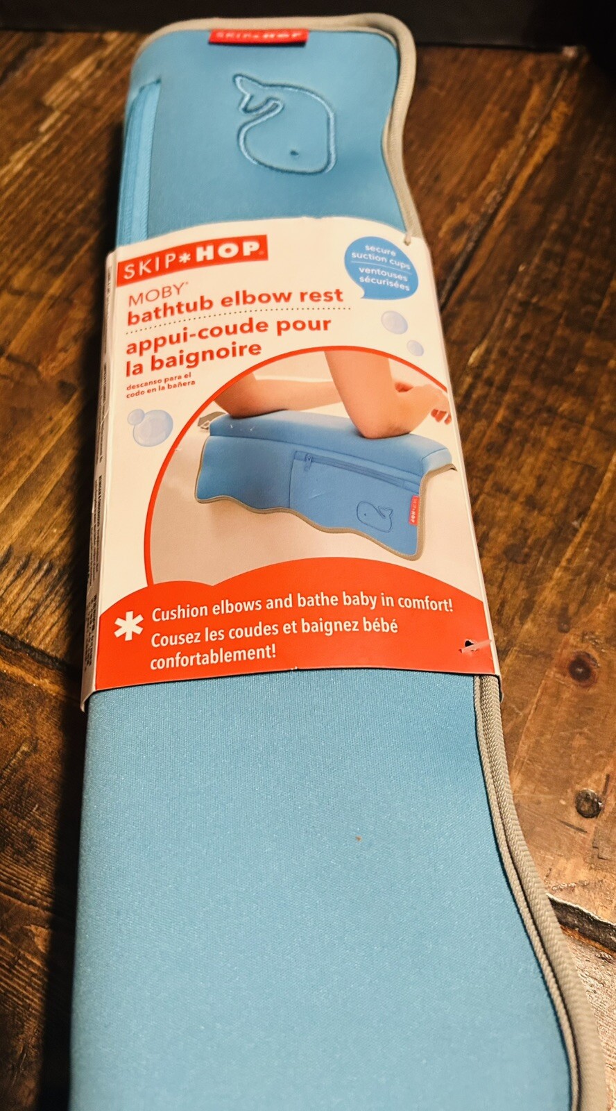 Skip Hop Moby Bathtub Elbow Rest Blue Cushy Comfy with Suction Cups Non-slip