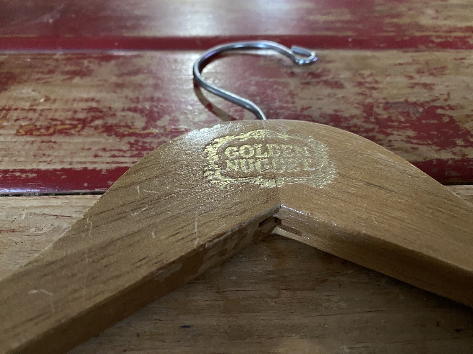 как выглядит Vtg Golden Nugget Casino Wood Skirt Hanger 17" ADVERTISING фото
