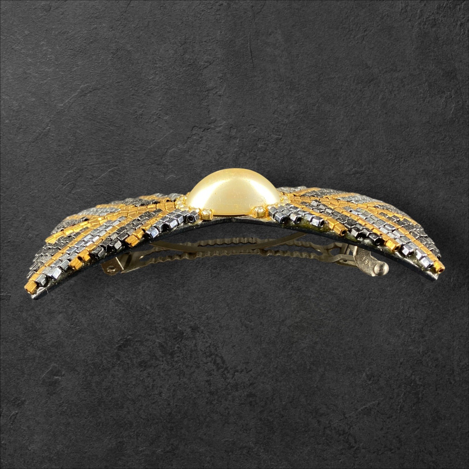 Vintage 1970's French Hair Barrette Clip Bow Shape Beaded Faux Pearl