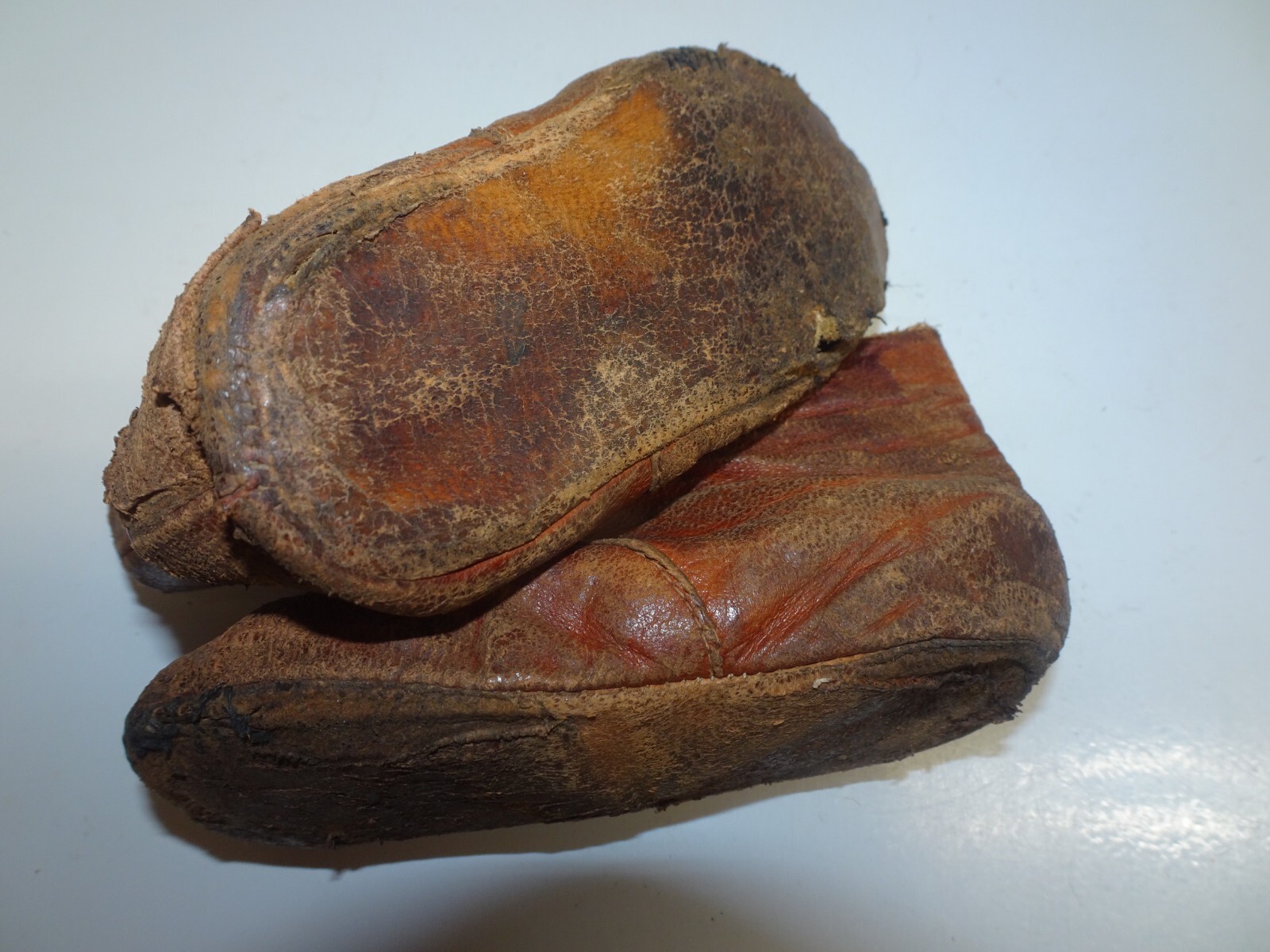 Antique Victorian brown leather side button baby booties