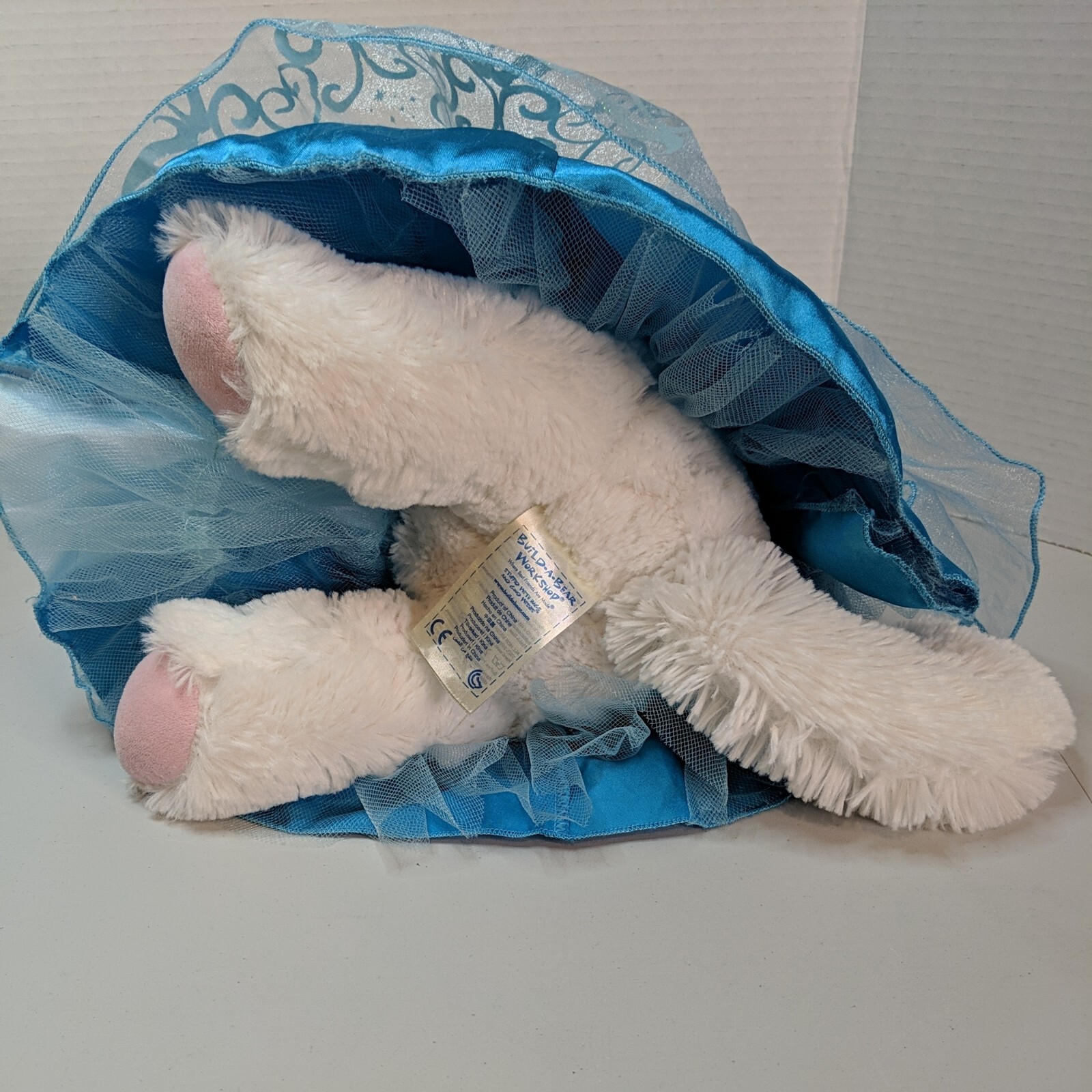 Build a Bear Cat 12 Plush White Kitten Stuffed Animal Blue Eyes Princess Dress