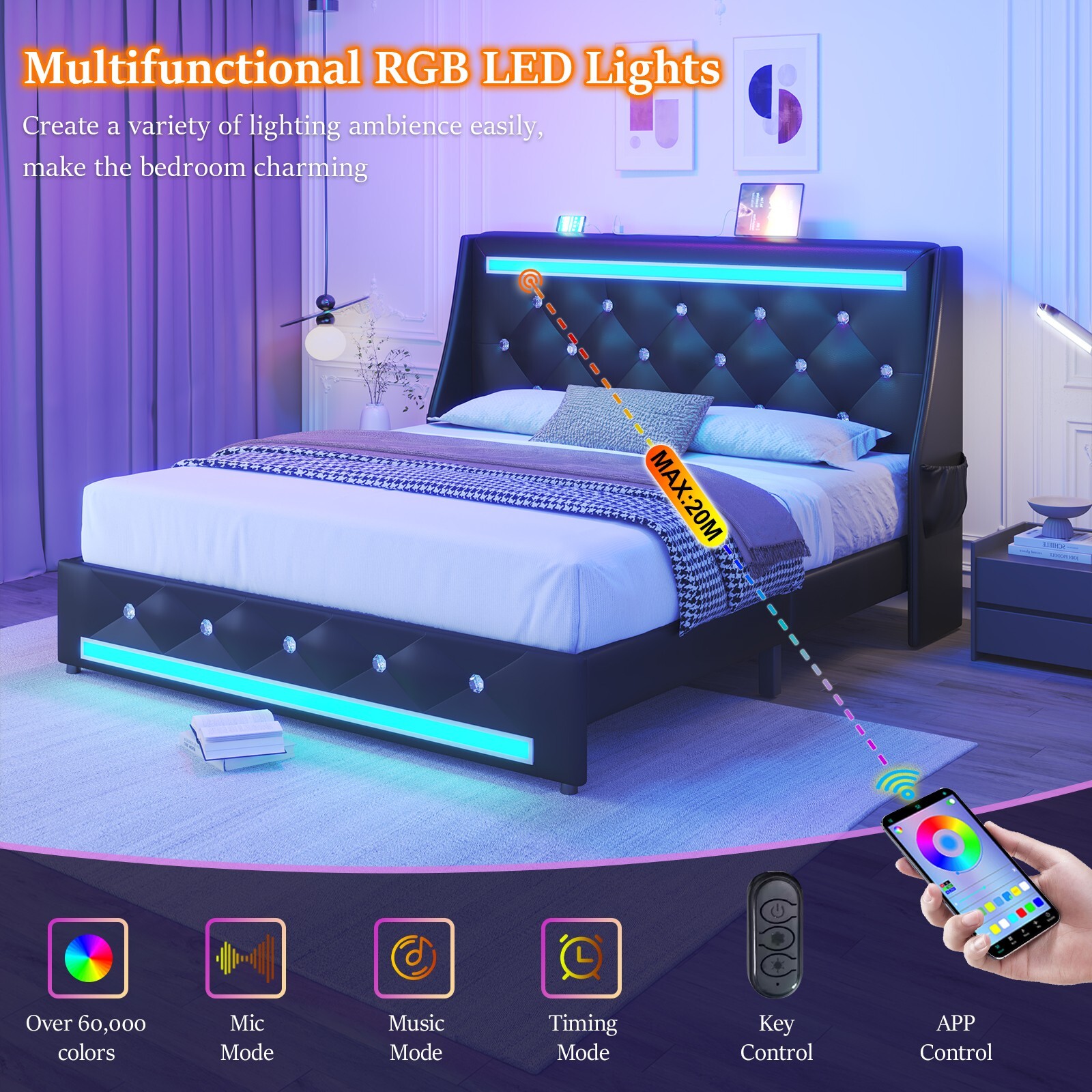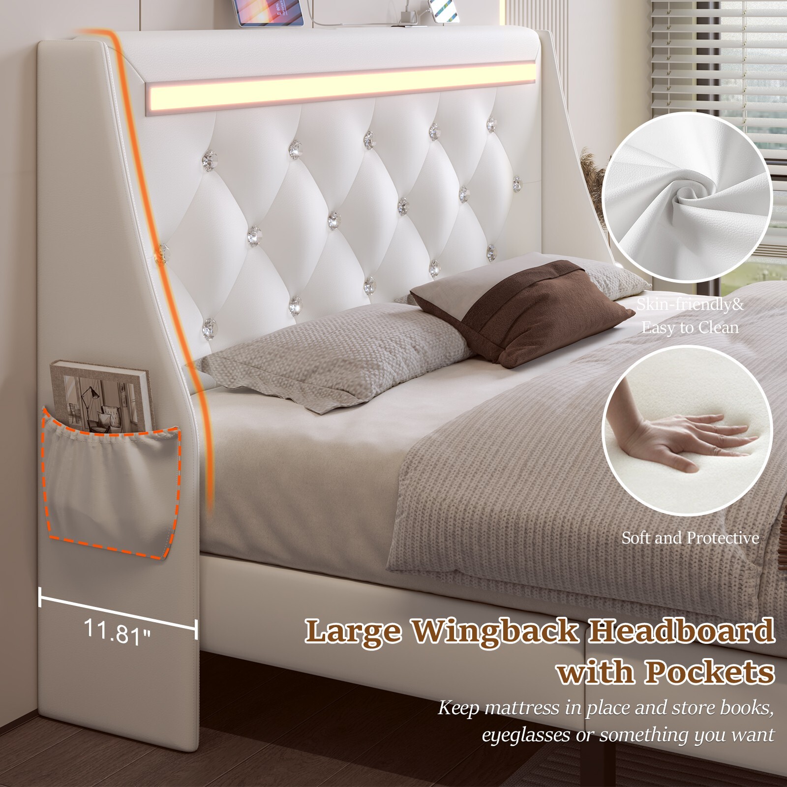 Особенности: LED Light, Wingback Headboard