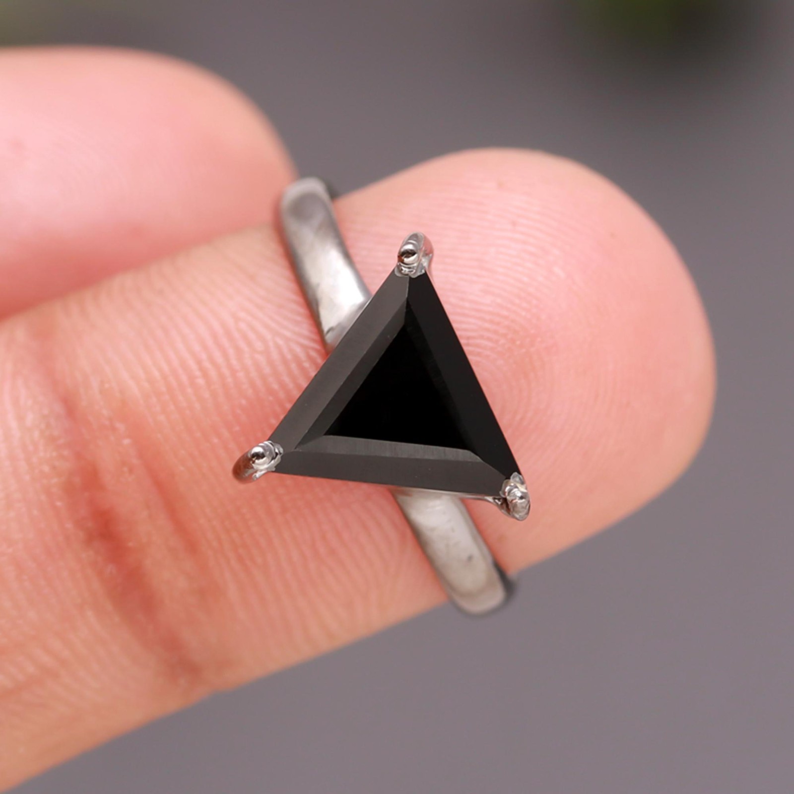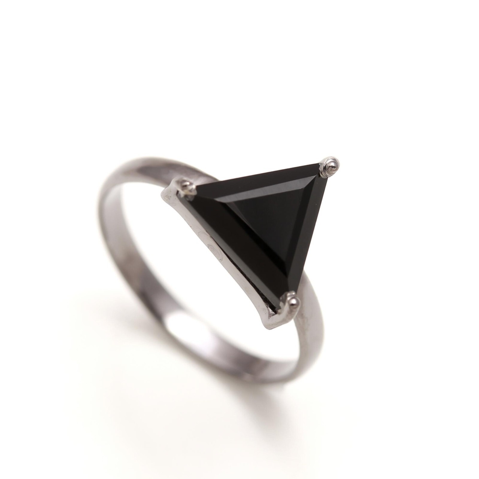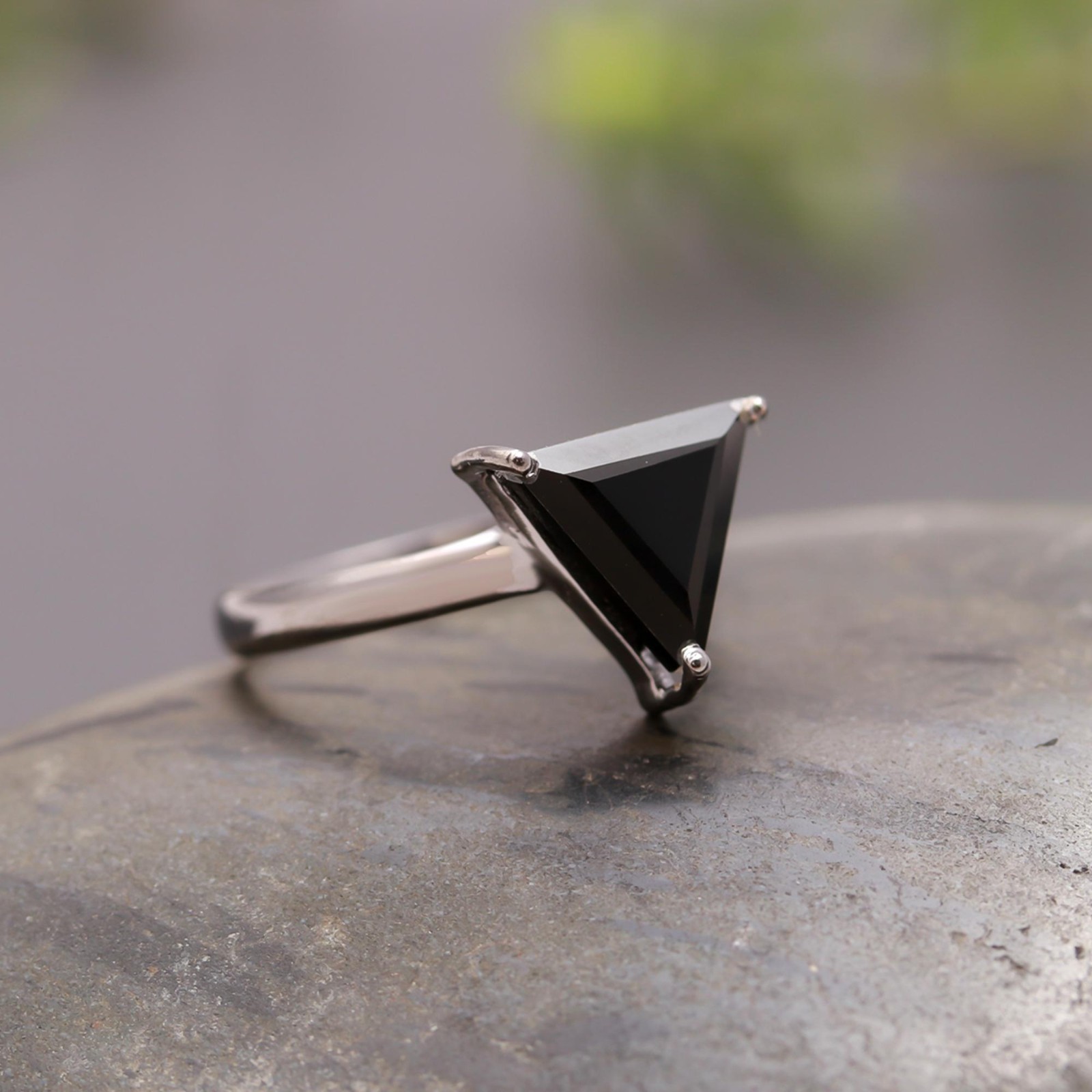 как выглядит Natural Black Onyx Triangle Ring Sterling Silver Black Oxidized Delicate Jewelry фото