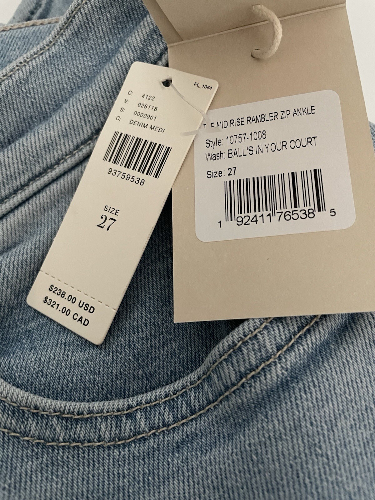 238 Mother The Mid-Rise Rambler Zip Ankle Jeans Standard Size 27 BNWT.
