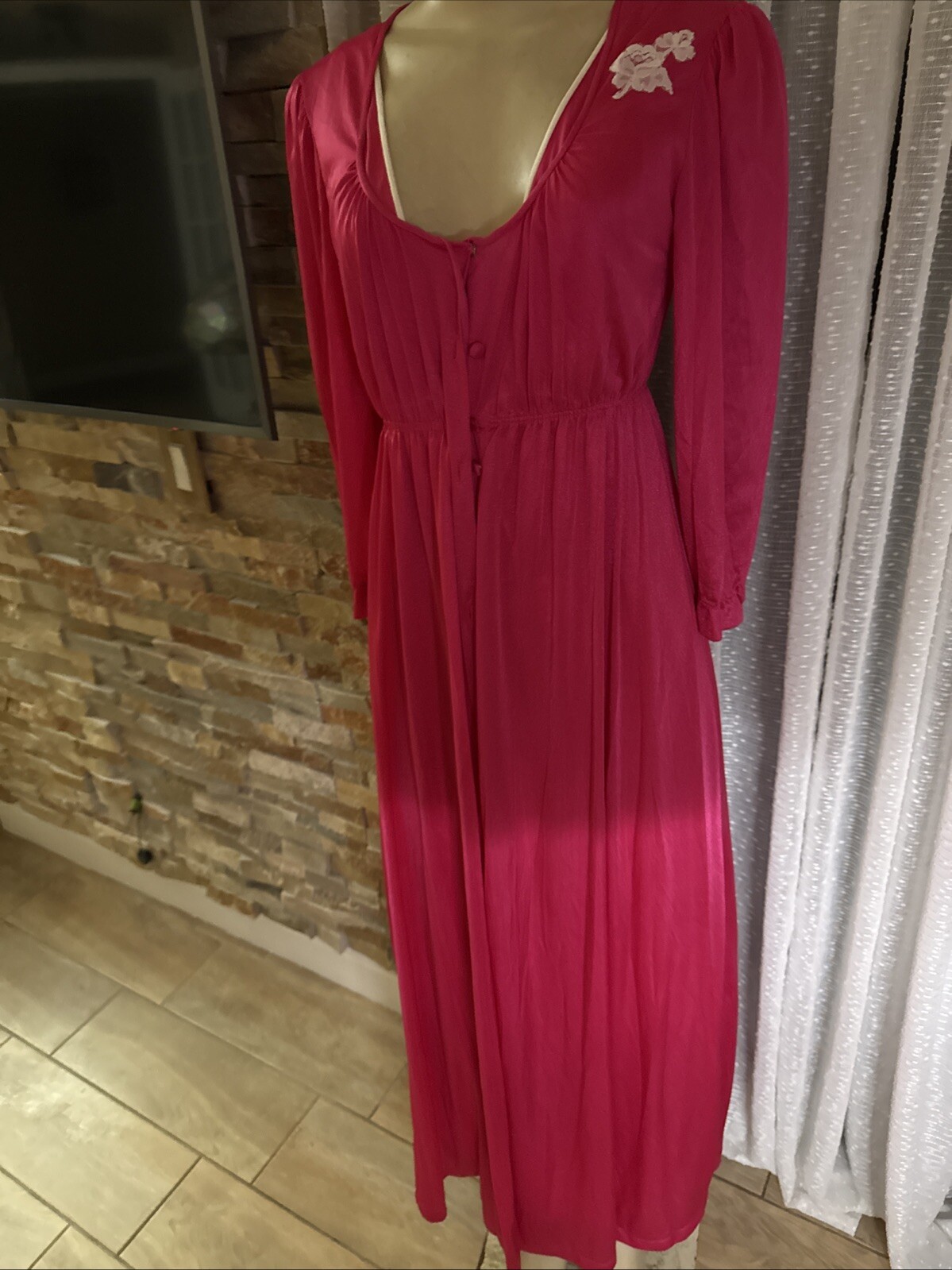 как выглядит Vtg 70s VASSARETTE. .NYLON Lace Floral Detail Peignoir Set Pink Tie Back SM c4 фото