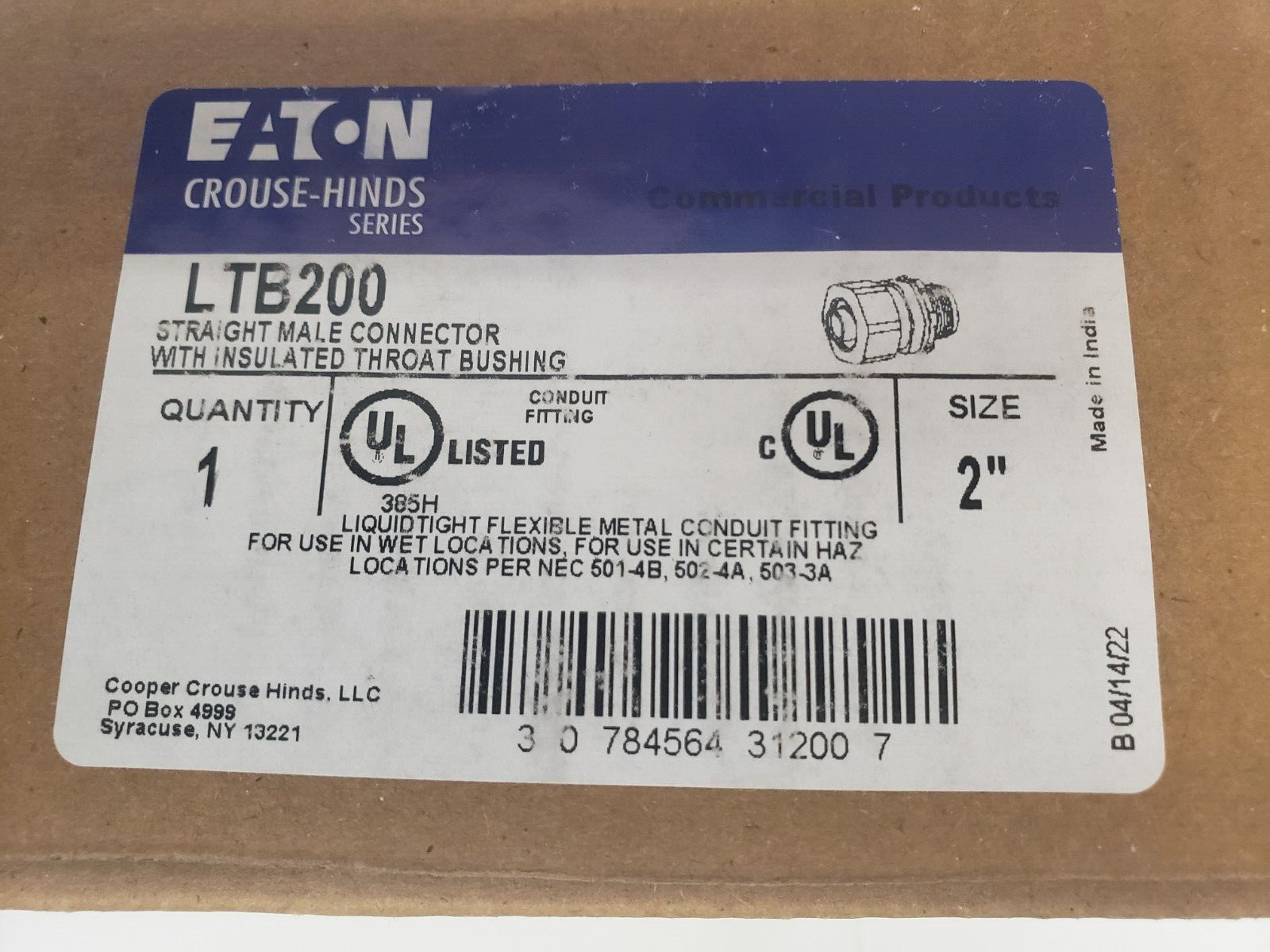 Cooper Crouse-Hinds LTB200 Liquidtight Insulated Straight Male Connector 2