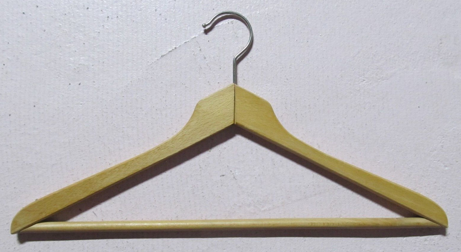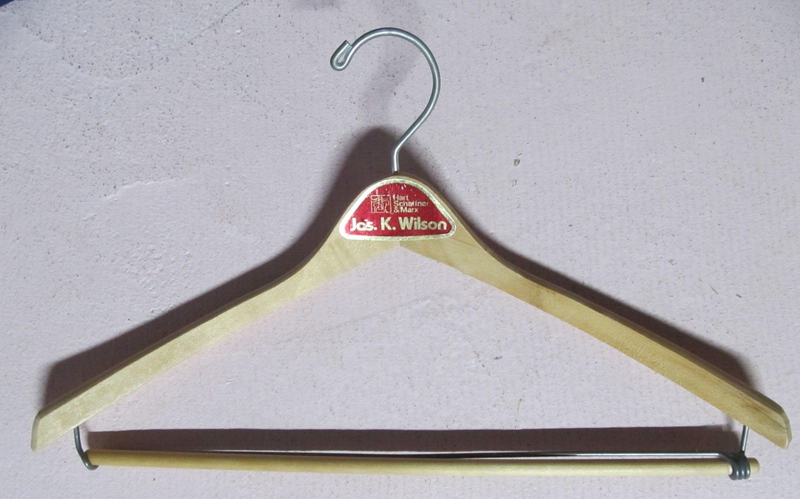 как выглядит 5 Vintage Wooden Clothes Hangers - 3 w/advertising 1 w/pants holder 179 фото