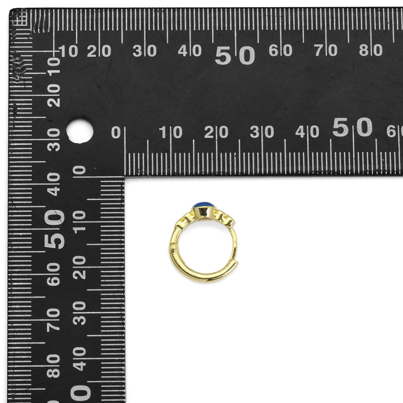 как выглядит Gold Blue Evil Eye Hoop Earrings, Sku LK861 фото