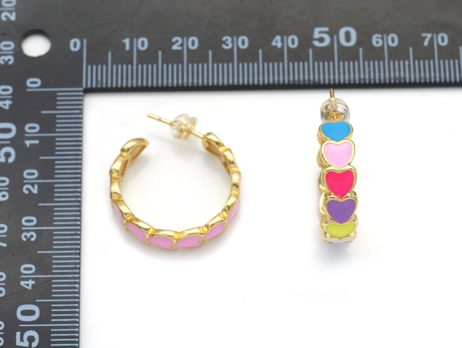 Colorful Enamel String Hearts Hoop Earrings, Sku J374