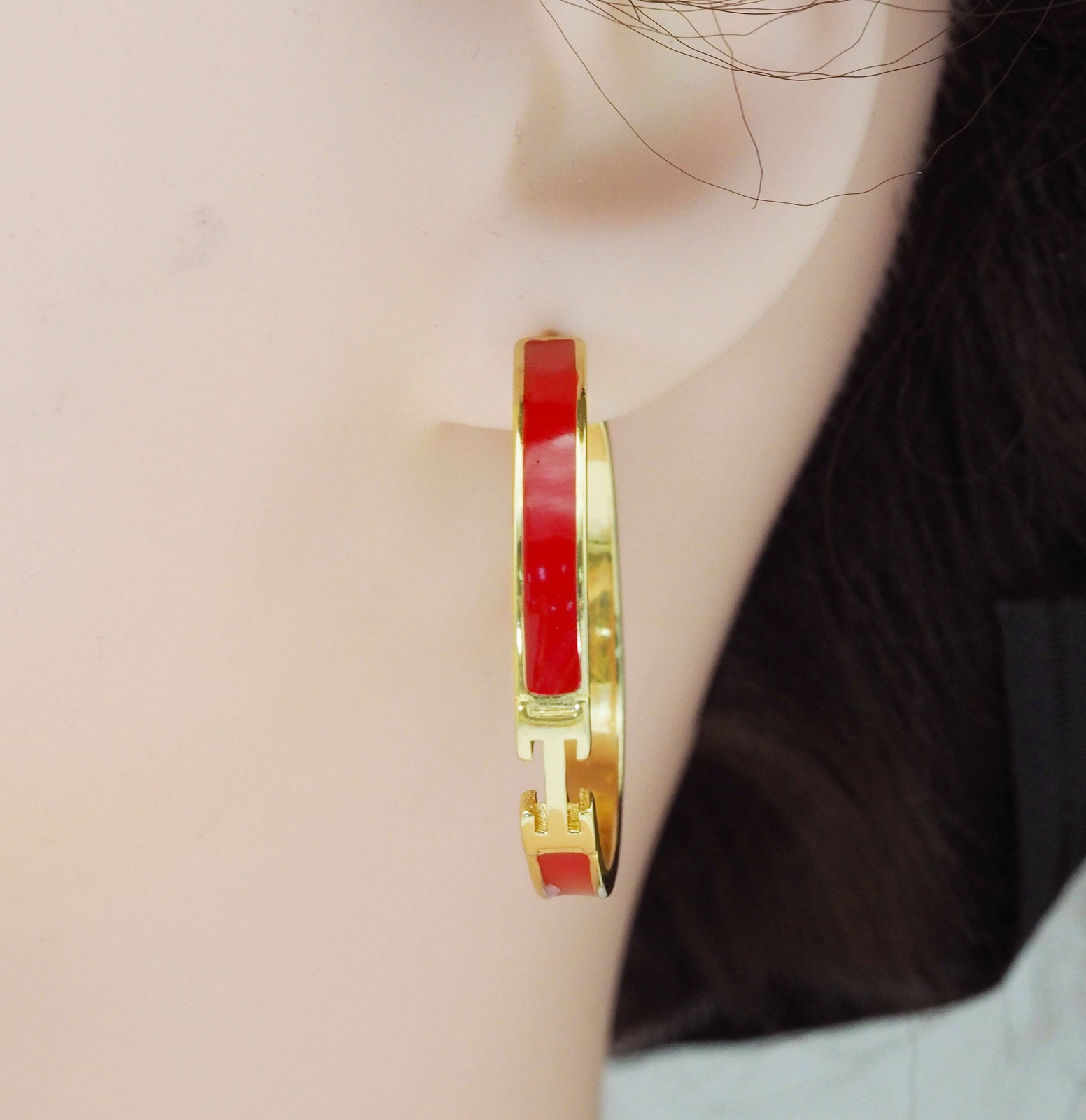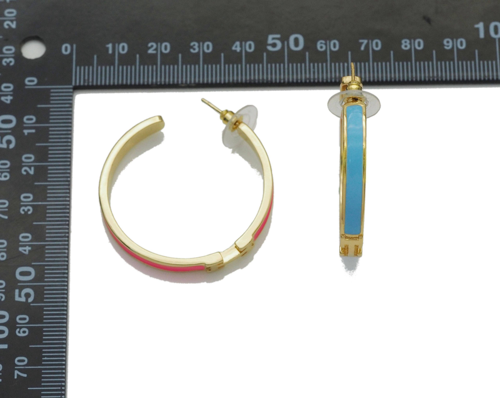 Colorful Enamel Gold Hoop Enamel Earrings, Sku LX155