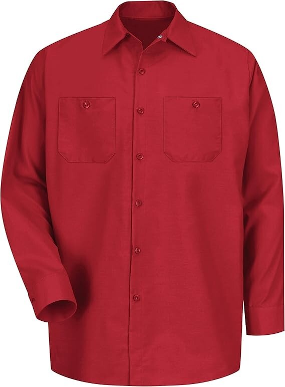 Red Kap Men's Industrial Long Sleeve Work Shirt, Red