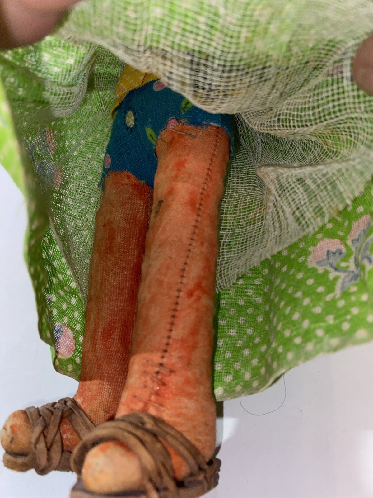 • Vintage Mexican Folk Art Gourd Handmade Paper Mache Doll Mom Carrying Baby 10