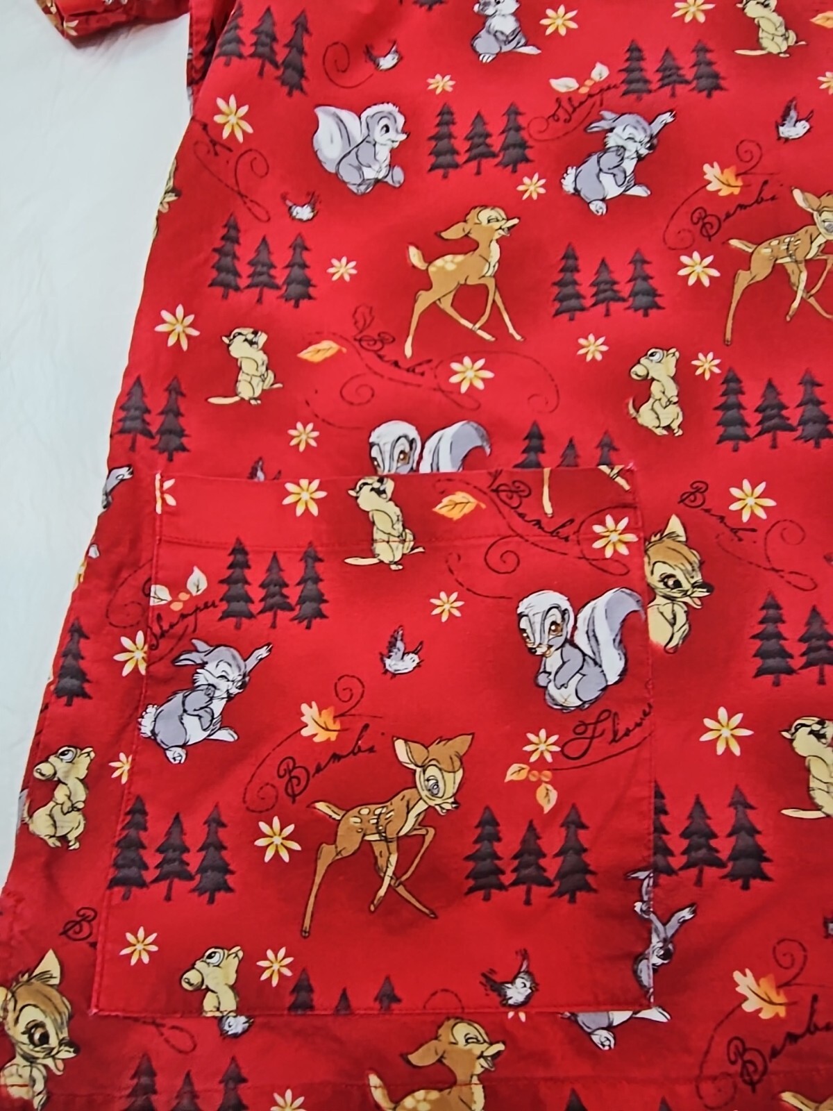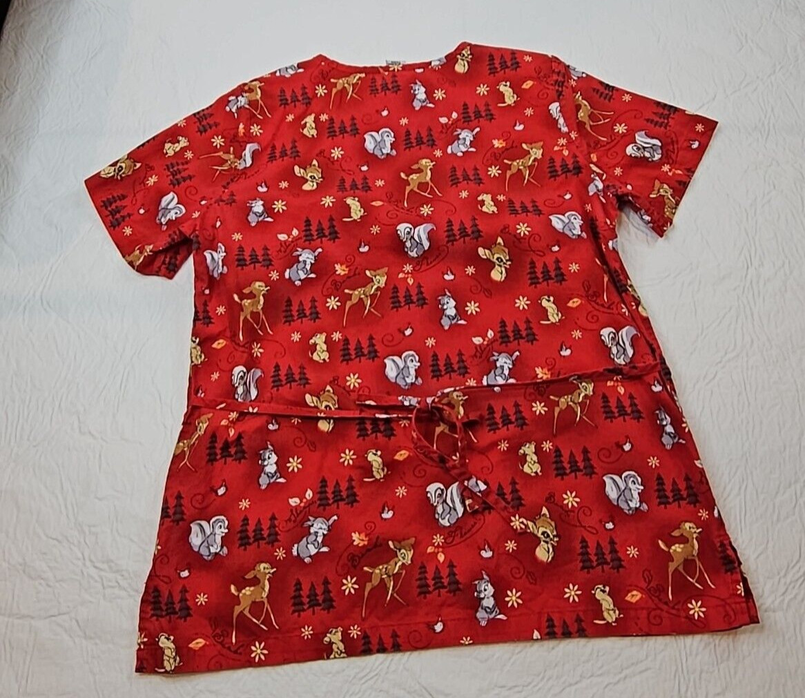 Disney Bambi Thumper Nursing Scrub Top Shirt Womens Size Small Ties Cotton Red
