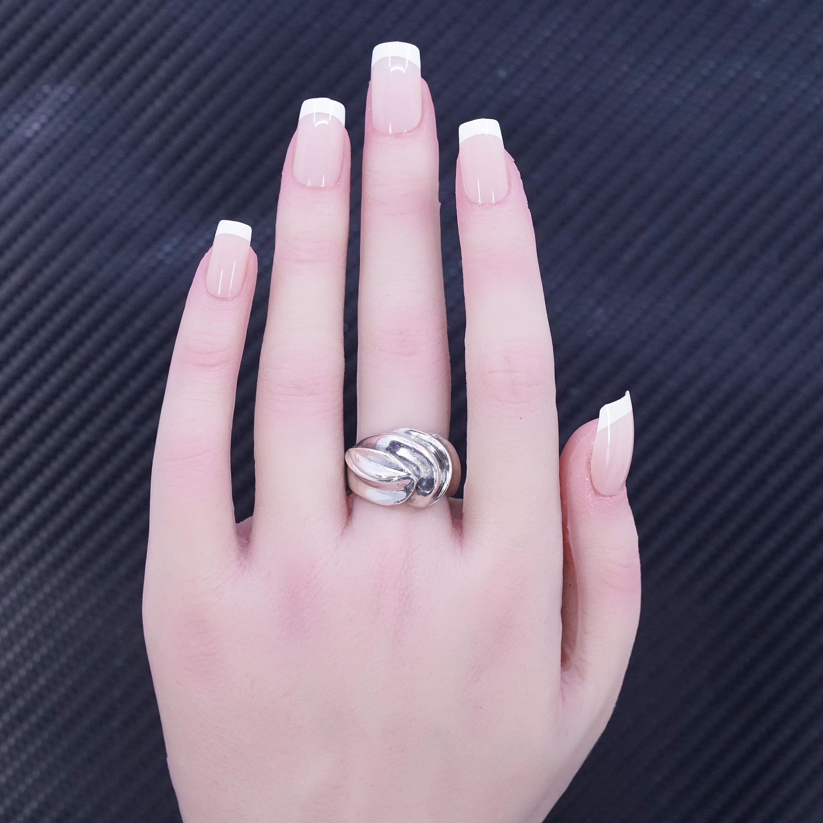 как выглядит size 7, vintage sterling silver 925 handmade wide ribbed band ring фото