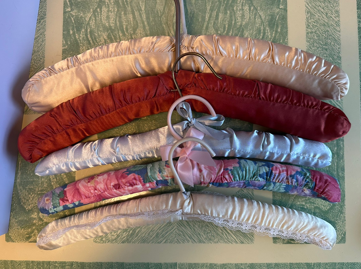 Vtg MCM Padded Fabric Satin Covered Hangers 16 15 Lot Of 5 Bows Retro MCM 21