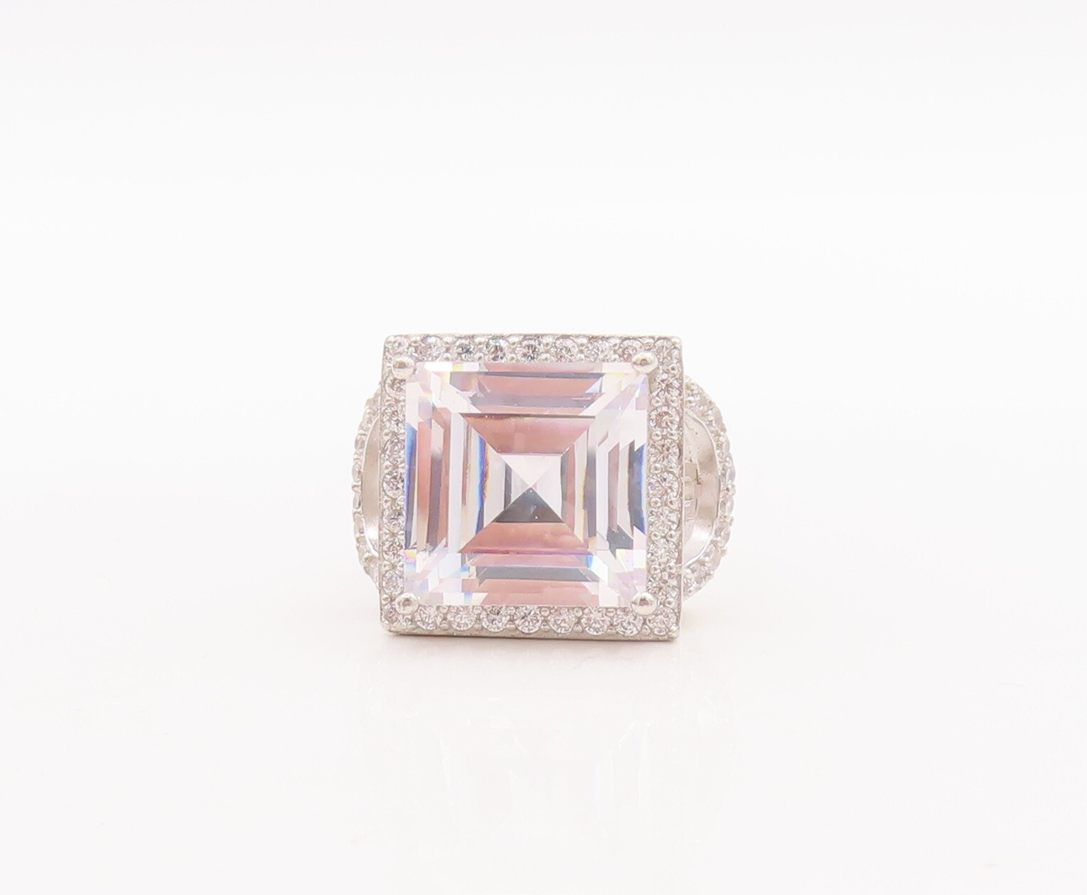 925 Sterling Silver Vintage Ring Cutout Square Cut CZ Inlay Sz 5 RG28758